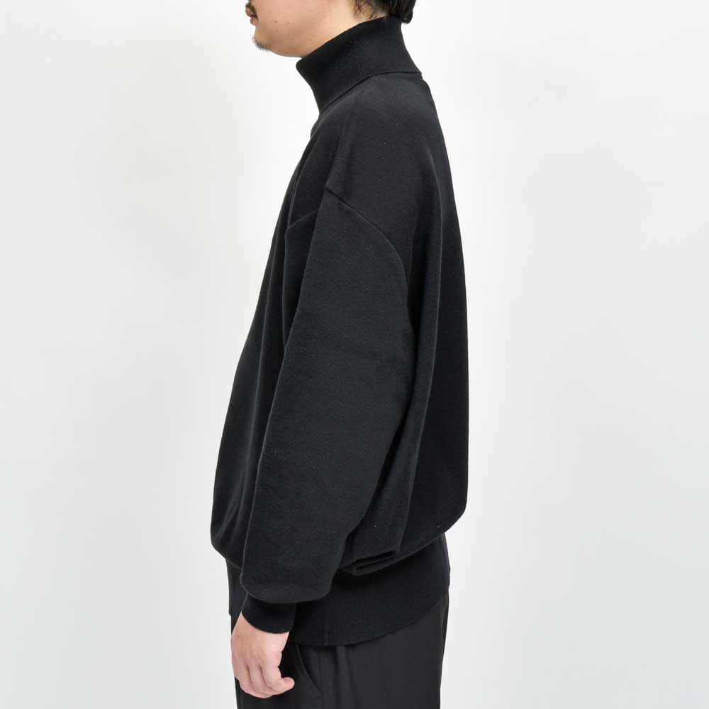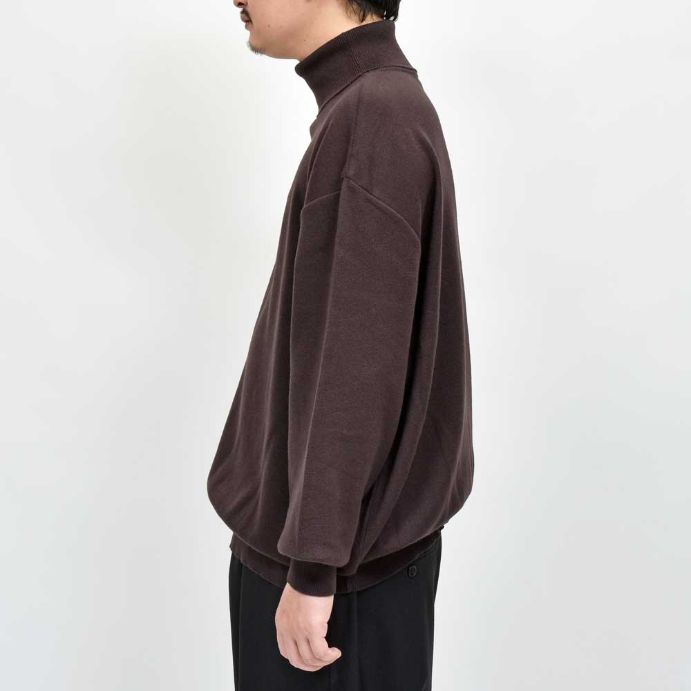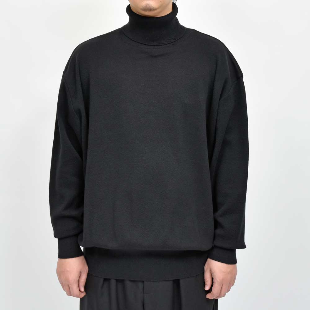 通常のニットに比べるとかなりゆったりとしたサイジングでして、いわゆるビッグシルエットなんですが、非常にしなやかな素材感なのでオーバーに見えないところがポイントになっています。