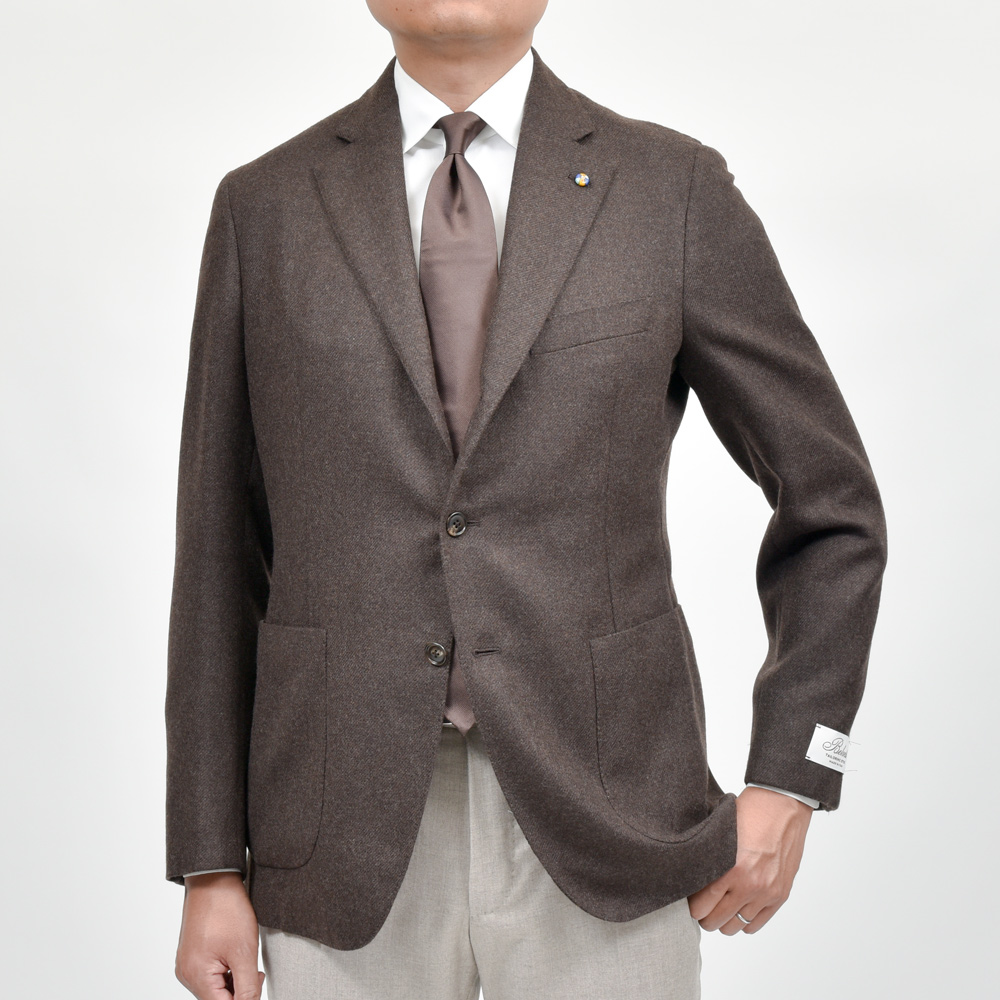 BelvestのアイコニックなモデルでもあるJACKET IN THE BOX。今年の秋冬も何とかカシミア素材をセレクトすることができました。注目カラーでもあるブラウンのカシミアは最高のタッチでして、最高の仕立てと相まって、エレガントな雰囲気漂う至極のジャケットに仕上がったかと思います。