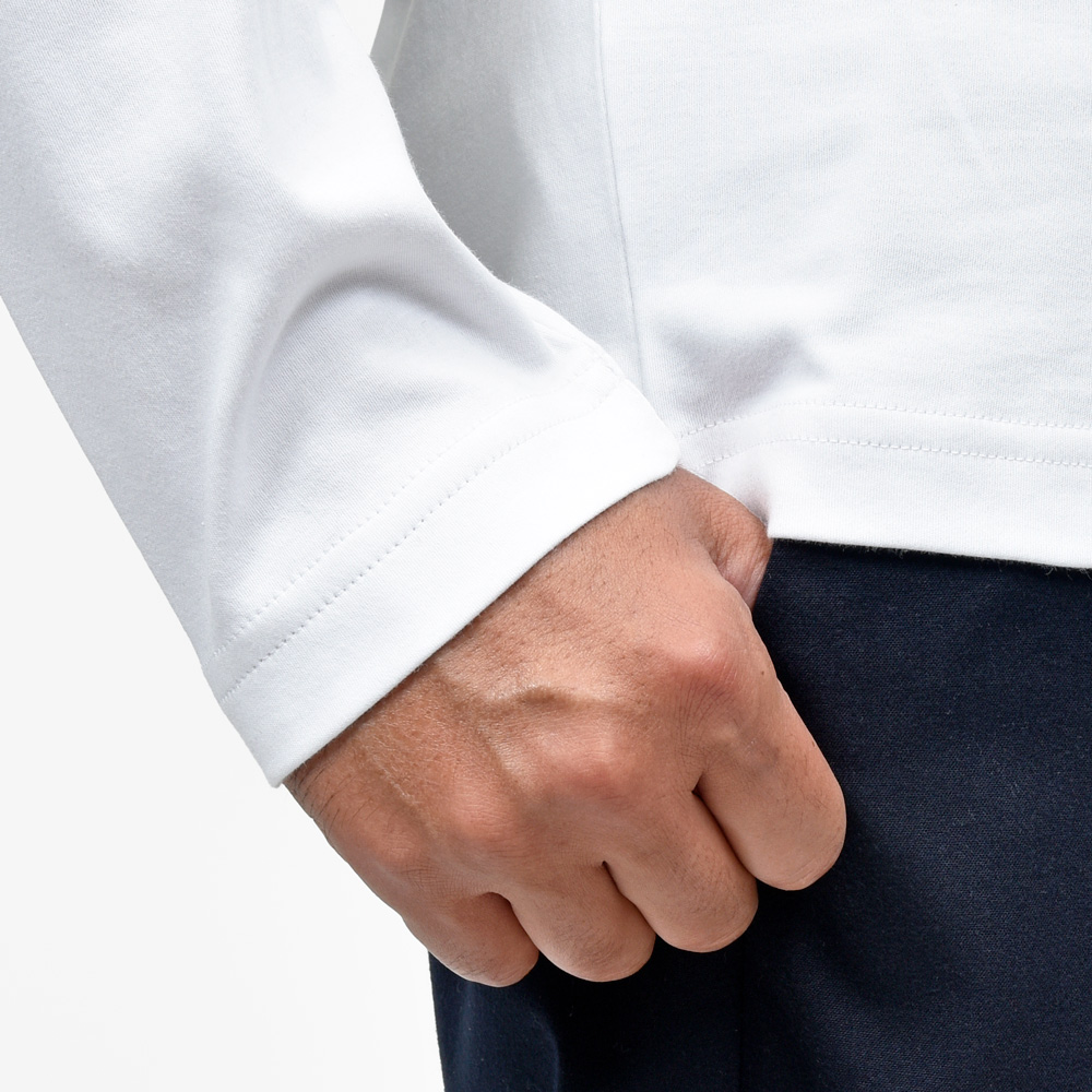 完璧なクオリティコントロールのもとエクアドルにて自社栽培されているゴシピウム・バルバデンセ(ピマコットン/シーアイランドコットン)を用い、収穫から縫製までほぼ一貫して自社ファクトリーでフィニッシュさせるプレミアムカットソーブランドStefan Brandt(シュテファン ブラント)、定番素材の中で最もグレードが高く、贅沢に生地を編み上げているのがこちらのダブルジャージーです。