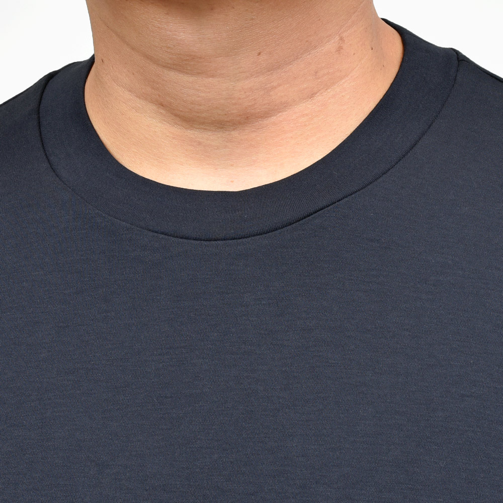 二重編み、つまり表も裏も表という非常に贅沢な組織でして、しっかりとした生地感と湿度・温度調整に優れた特性を持つファブリック。つまり暑がり&汗かきの方にピッタリというわけです。