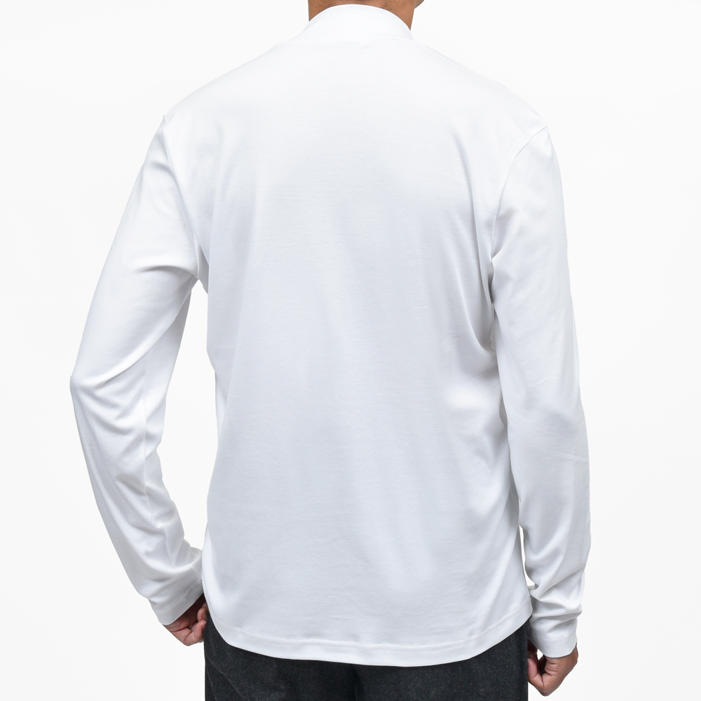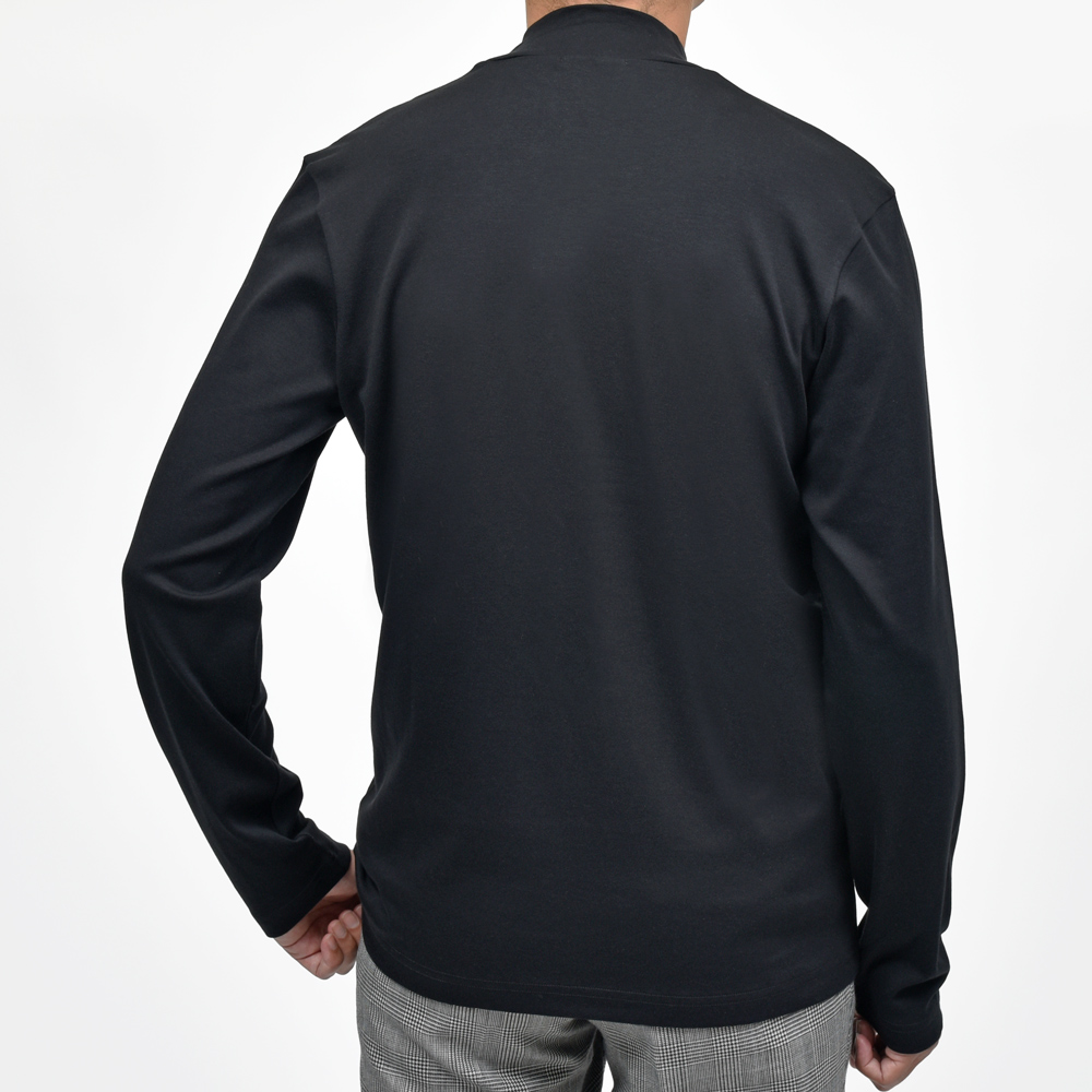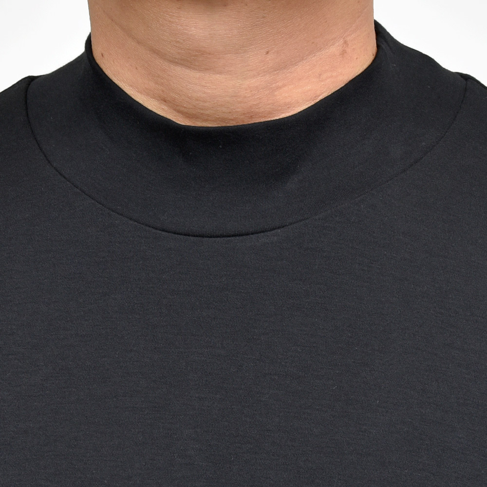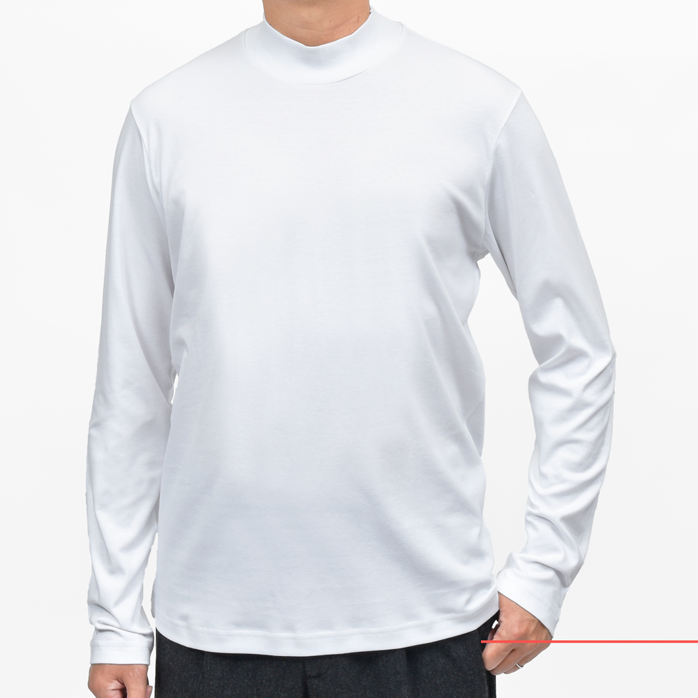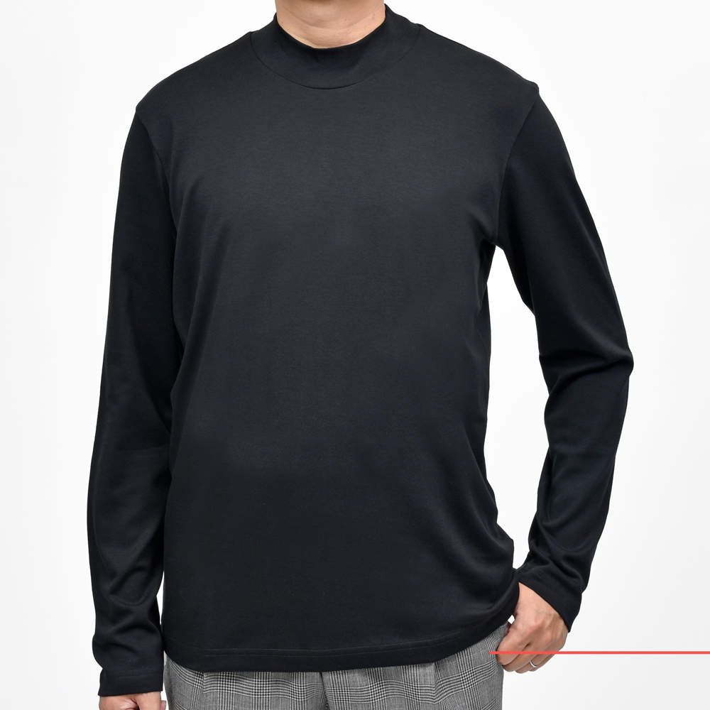 キュッと首が詰まったクルーネック・・・にほど近いくらいのモックネックです。最近はカットソーのモックネックといえばこのくらいが多いと思います。