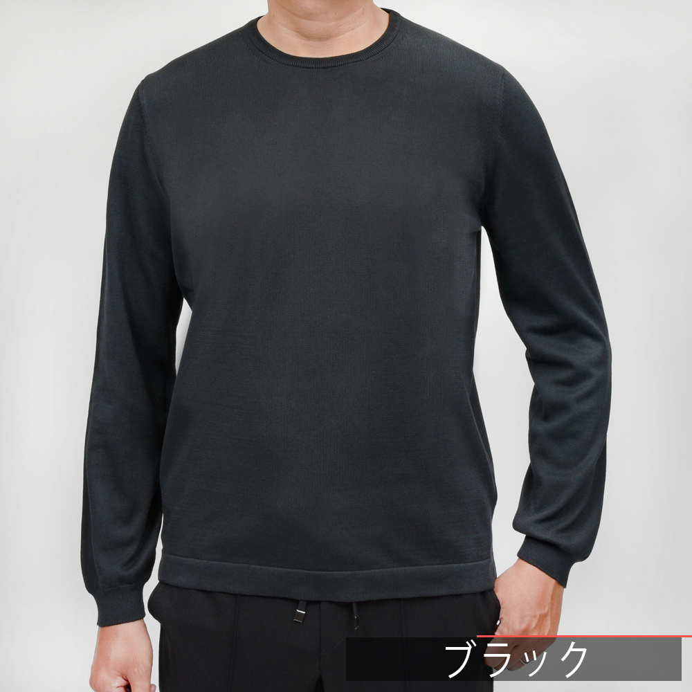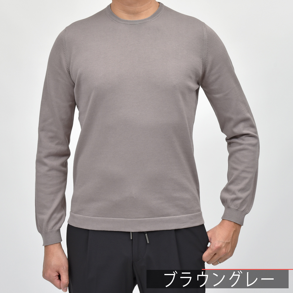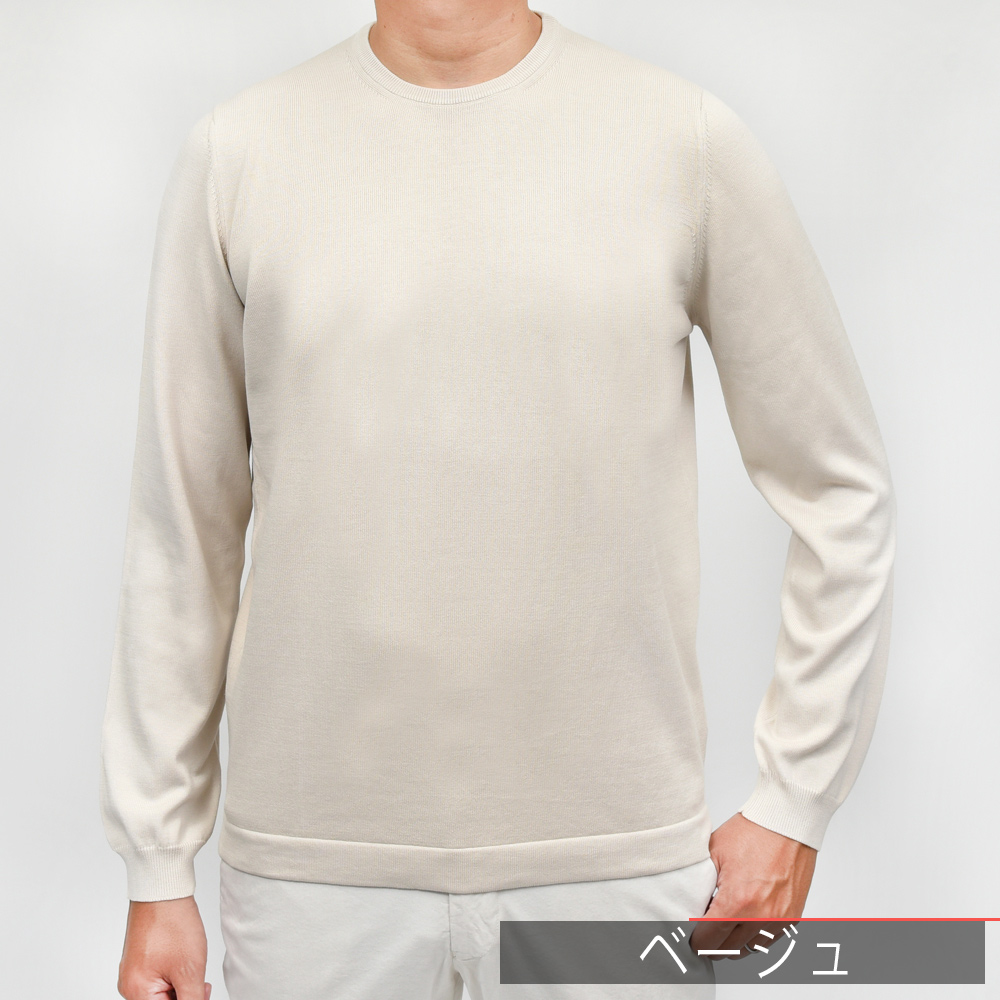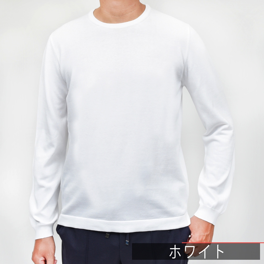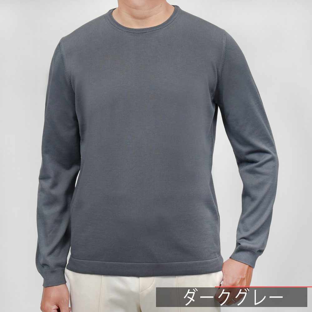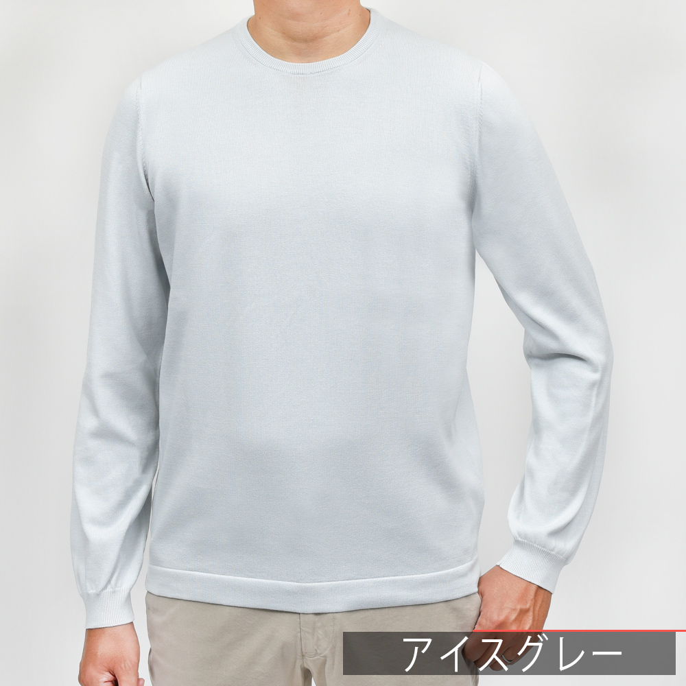GRAN SASSO(グランサッソ)の12ゲージコットンクルーネックニット、通称“ニットT”の長袖バージョンは通年展開アイテムです。