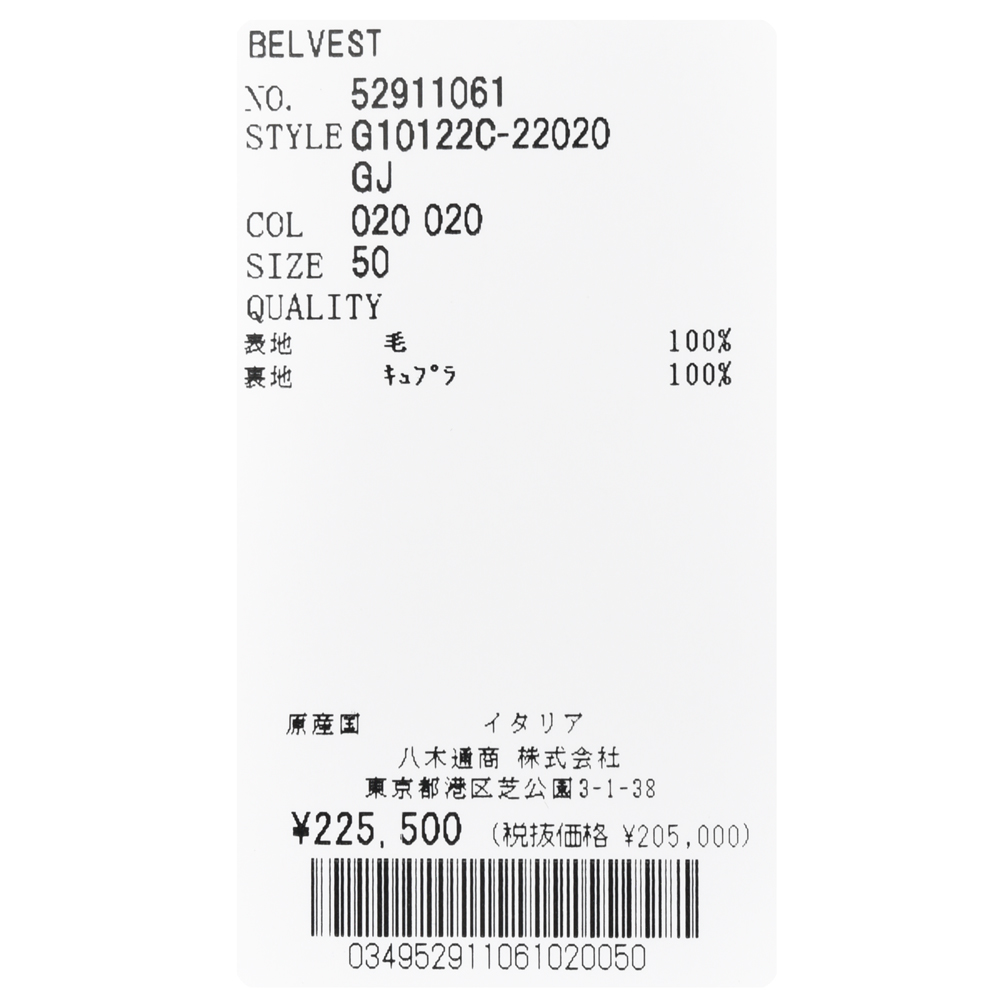 Belvestなので当然軽く、タッチもガシガシせずにしなやかです。この辺りはBelvestが選ぶ生地なので、傾向といいますか特性は同じですね。