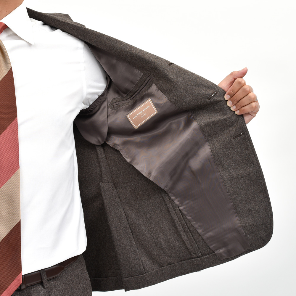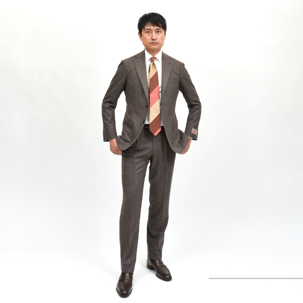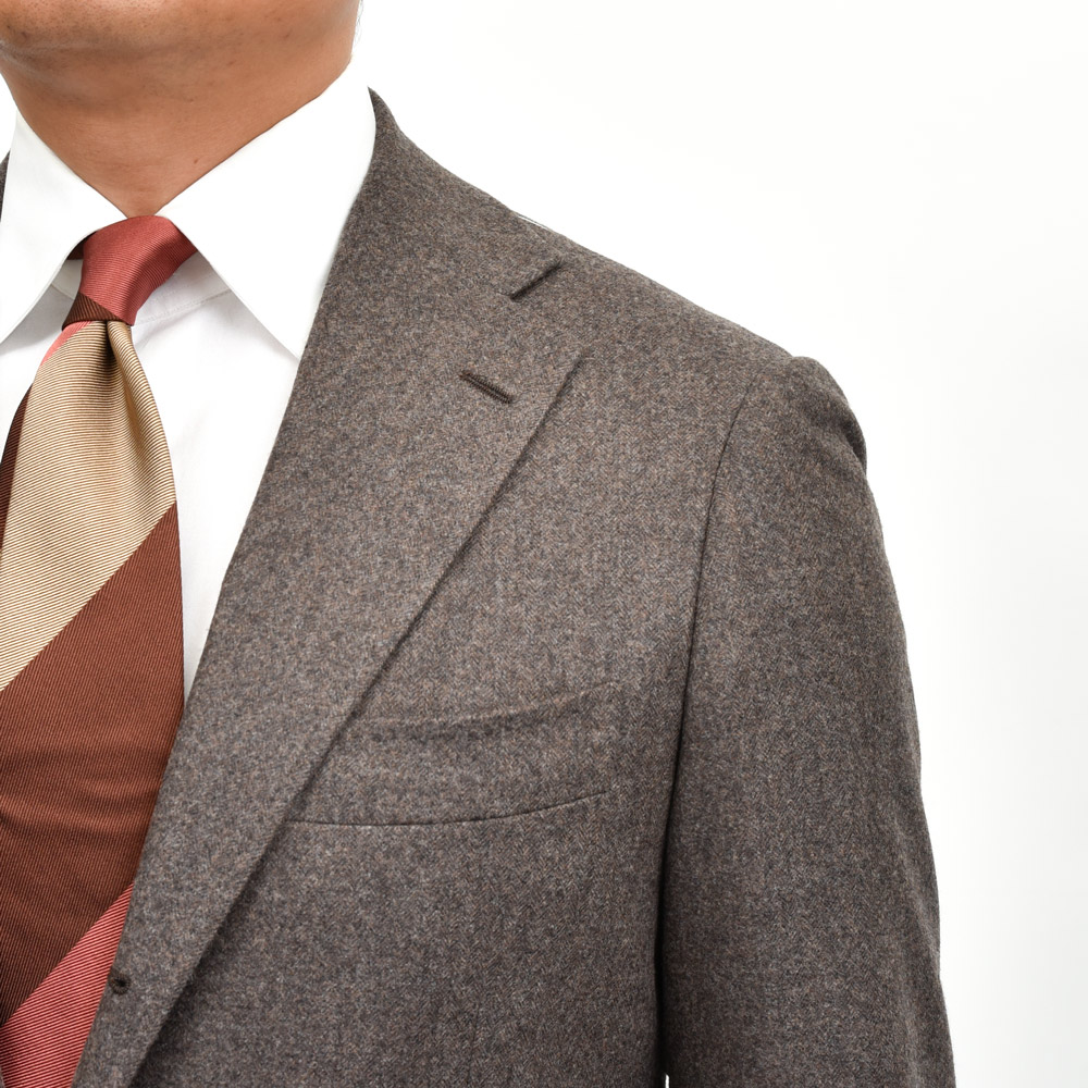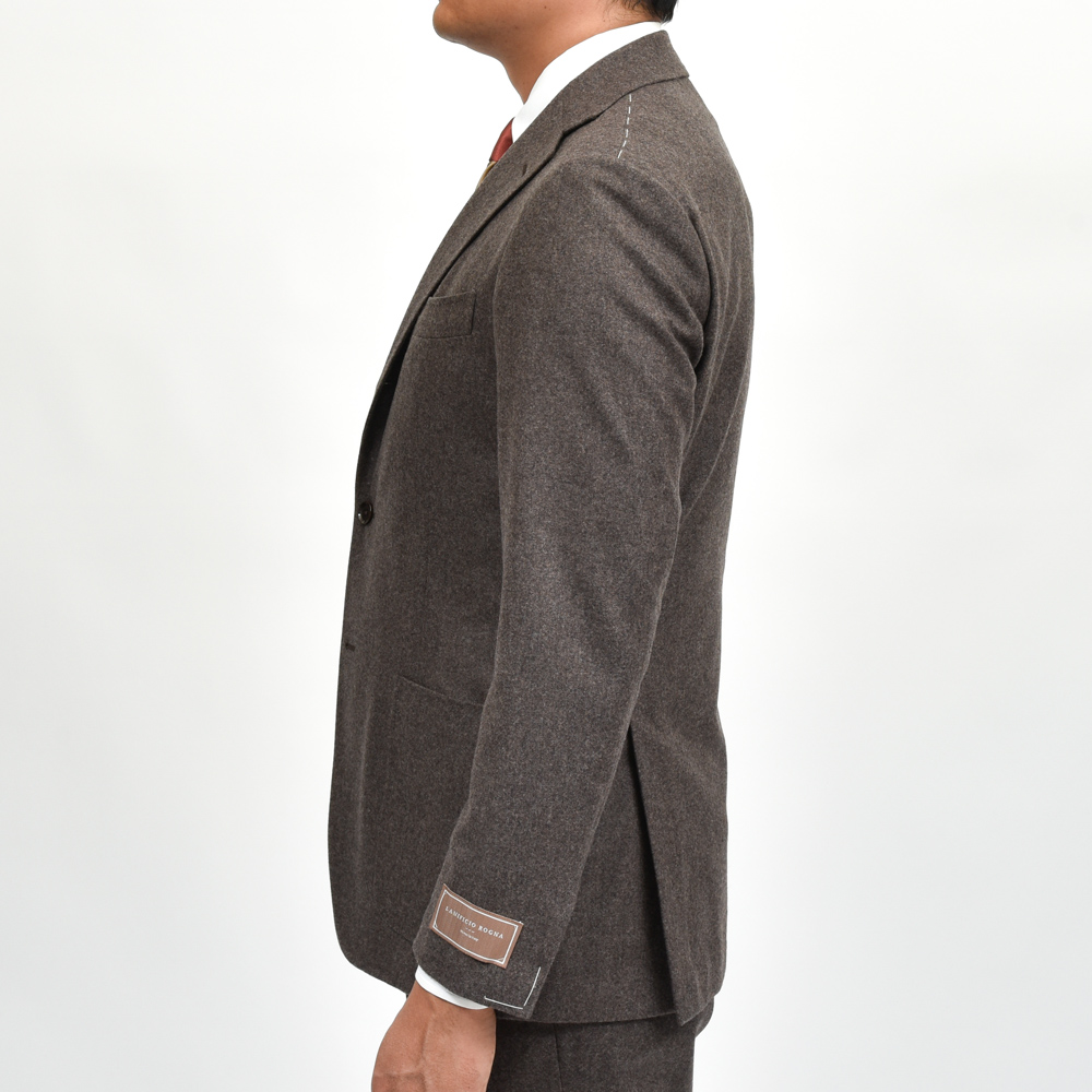 LANIFICIO ROGNA(ラニフィーチョ・ローニャ)社製のブラウンヘリンボーン生地を使用した、gujiオリジナルのウールカシミアジャケット