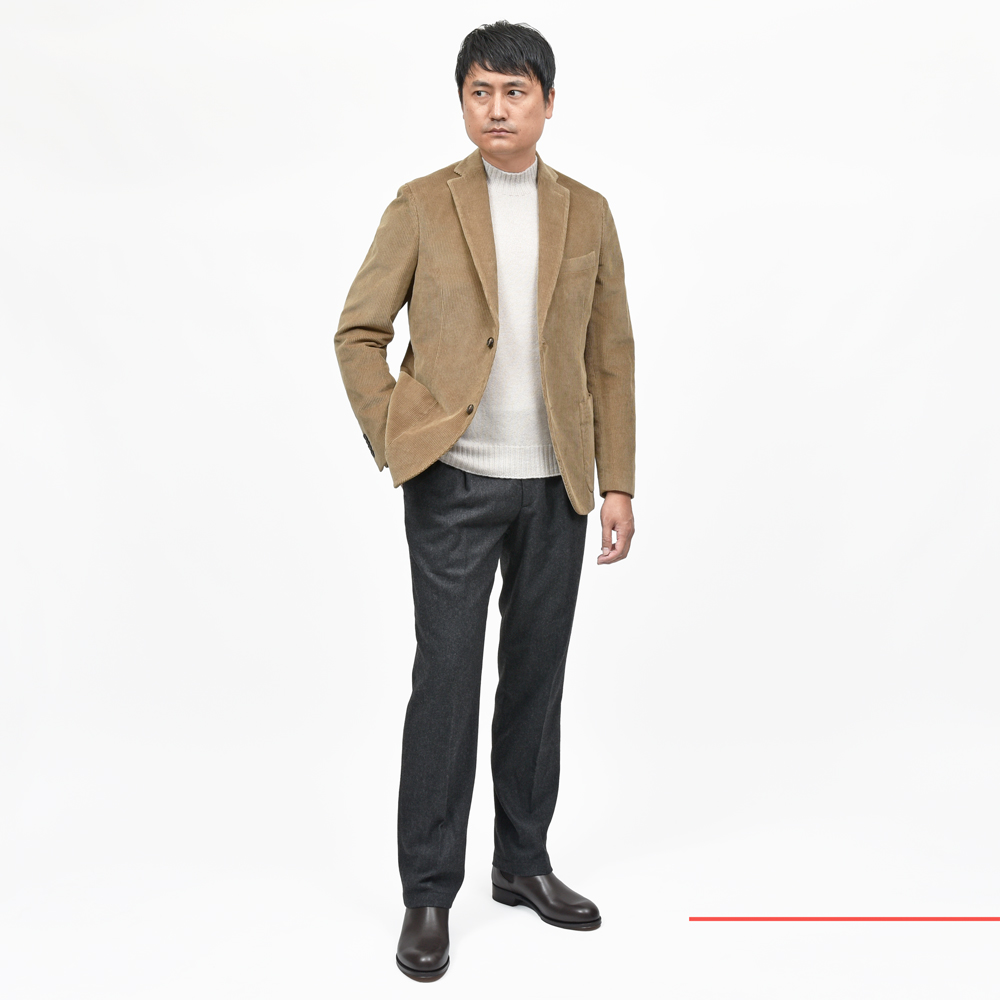 以前ならMONTEDOROで提案されているジャケットですが、INCOTEXになり、コーデュロイでもモダンで都会的な印象にアップデートされています。
