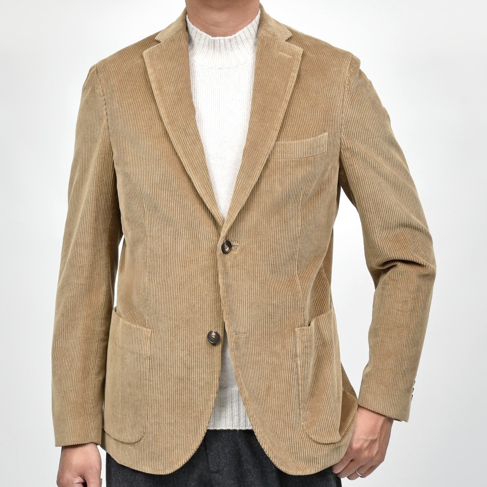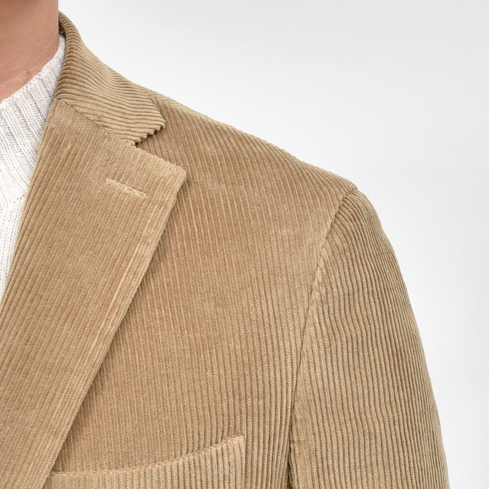 コーデュロイ素材は中畝でストレッチミックス。カントリーにならずに都会的に着られるようナチュラルショルダー&スマートシルエットで仕立てられています。