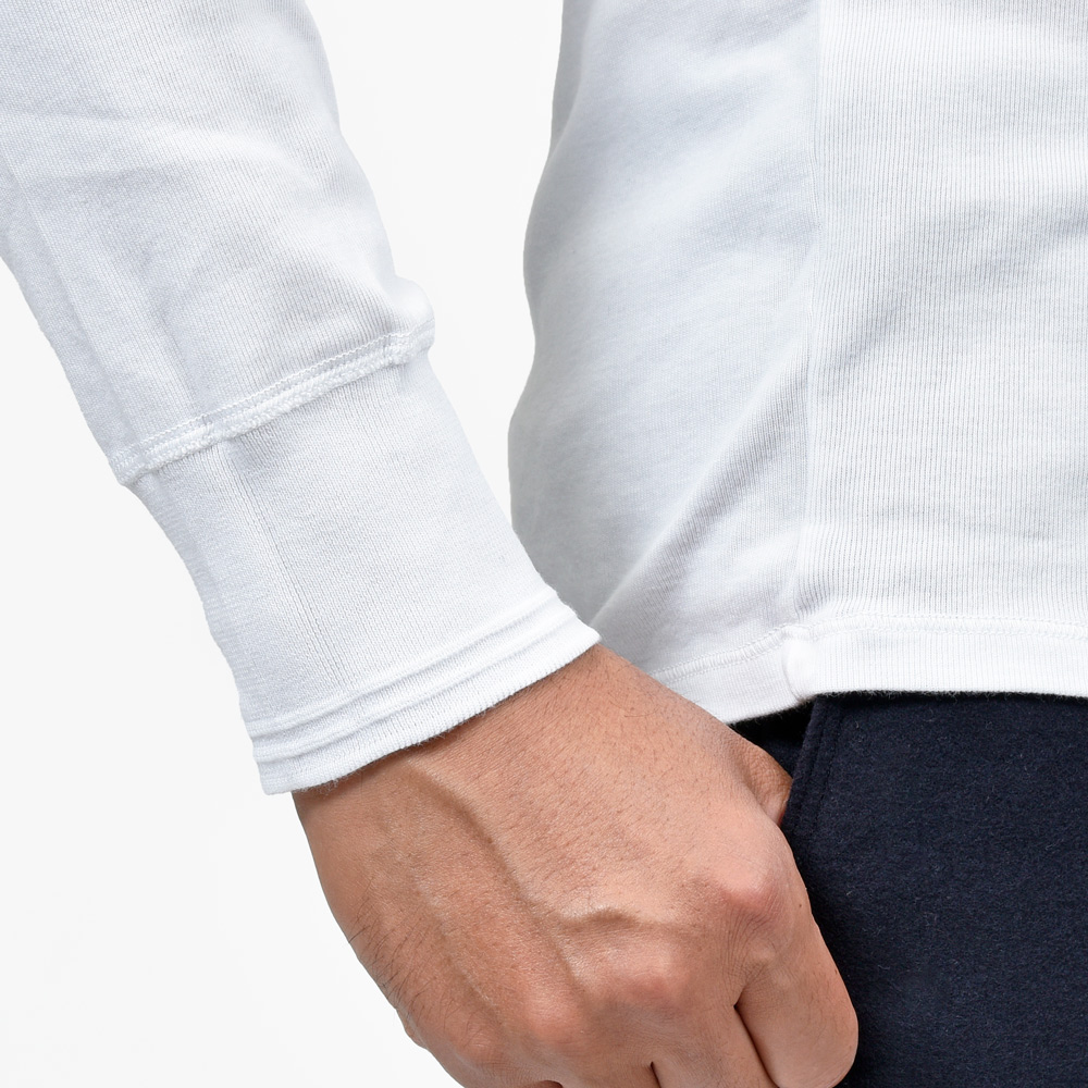 変わらないことが価値になっているアイテムと言いますか、ブランドですよね。長年gujiでも展開を続けているSchiesserのKARL-HEINZ、着るとなんだか体がシュッとして見える魔法のようなアイテムです。