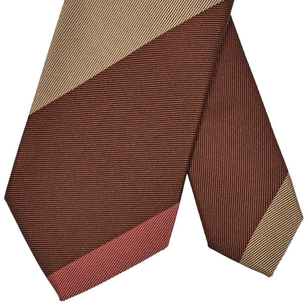 マルチ配色のブロックストライプタイ、BASSIお得意のデザインですが、今シーズンは少しシックに、アーシーなカラーを基調としたセレクトにしています。
