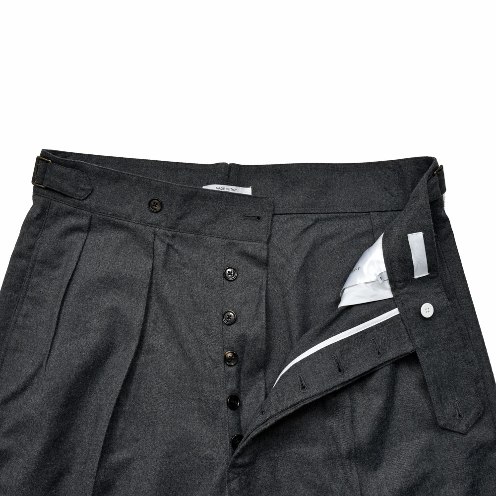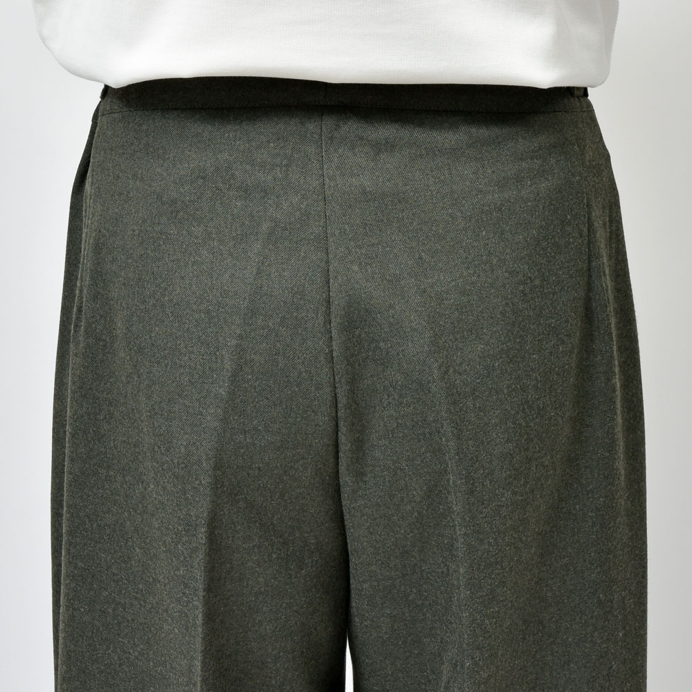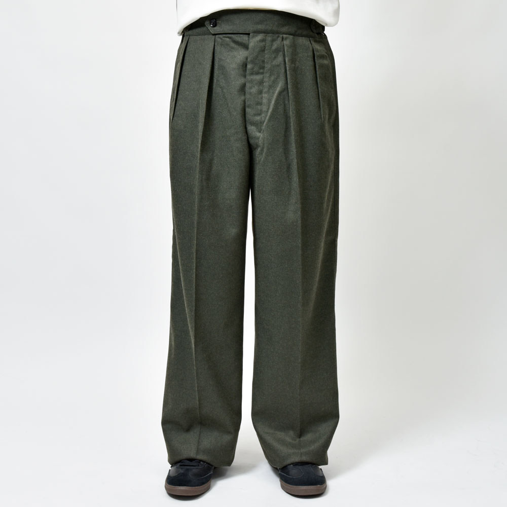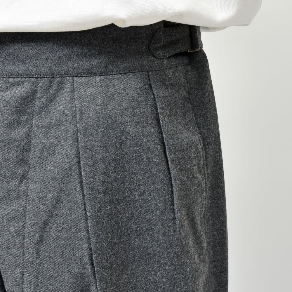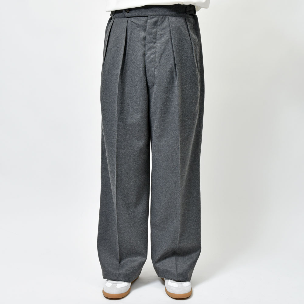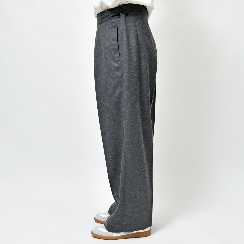 バックポケットなし、サイドアジャスター、2インプリーツ、字面だけ見ると結構クラシックなパンツという感じですが、実際のものに関しては今の気分にフィットしたモダンなアイテムになっています。