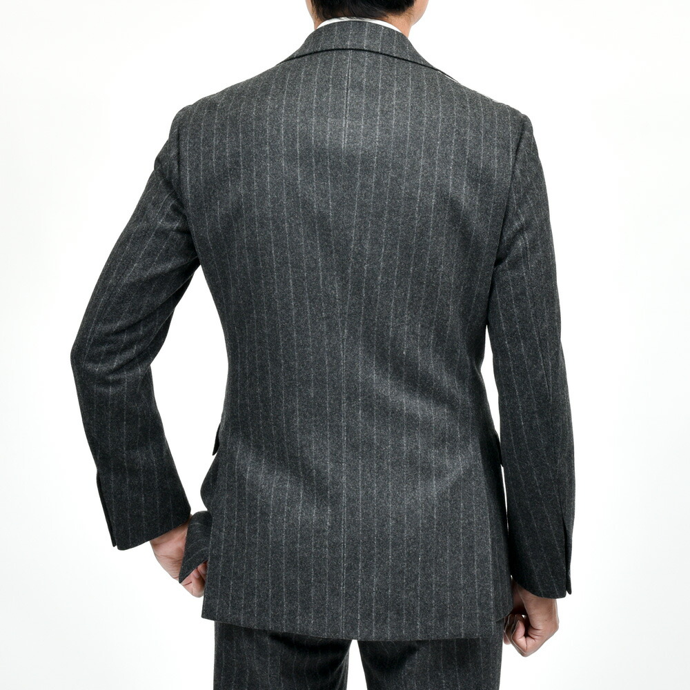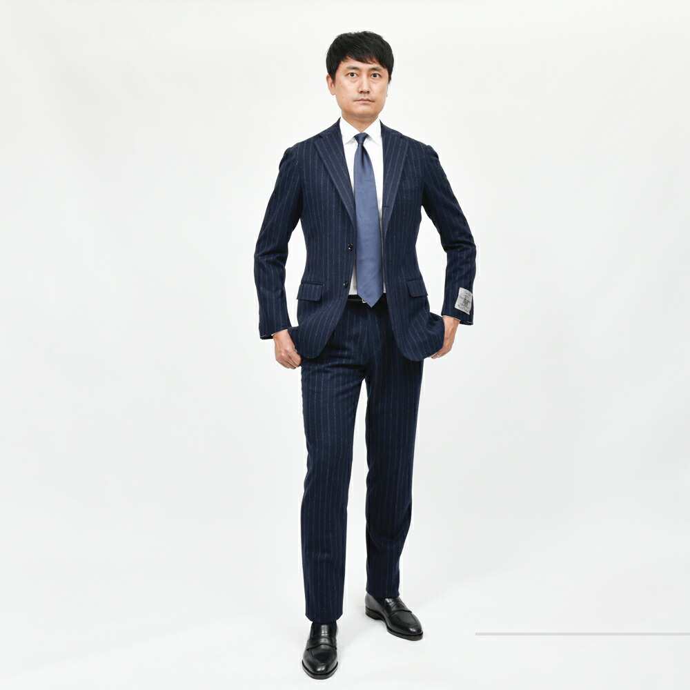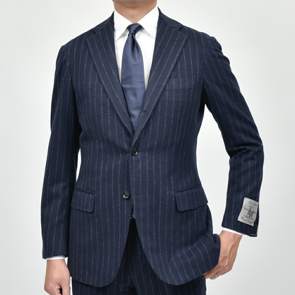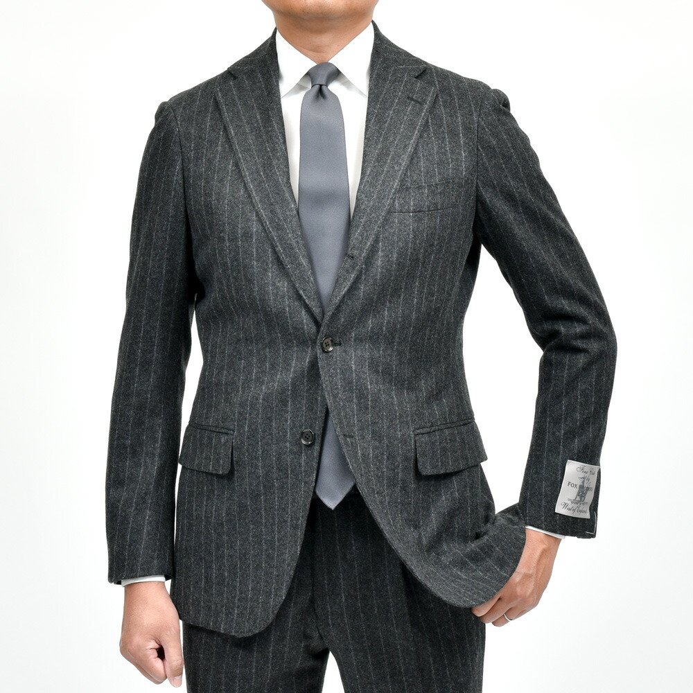 ふっくらと起毛した表情が特徴で、構築的な仕立てと相まって、着る人の佇まいに威厳と落ち着きを与えます。 Fox Brothersは1772年創業、英国サマセットを拠点にする老舗ミルで、世界で初めてフランネル生地を生み出したことで知られます。 長年にわたり培われた紡績と仕上げの技術により、重厚ながらもしなやかな、まさに“英国フランネルの原点”とも言えるテキスタイルを生み出し続けています。 この「CBT5」は、クラシックなチョークストライプを力強くも上品に表現しており、ビジネスにもフォーマルにもふさわしい存在感を備えた一本。寒い季節に相応しい温もりと、時代を超える気品をまとった一着に仕上がっています。 gujiオリジナルスーツとは RING JACKET(リングヂャケット)ファクトリーで縫製するオリジナルスーツ。上質なファブリックと確かな技術によって仕立てられ、普遍的なデザインをもとに長く愛用できるようgujiが考える現代的なバランスに調整したスーツです。 (画像のスタッフは182cm、76kgで50サイズを着用しています。) |