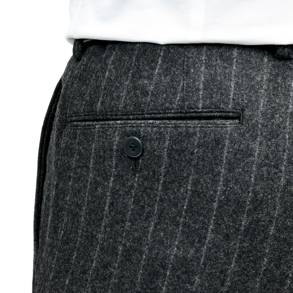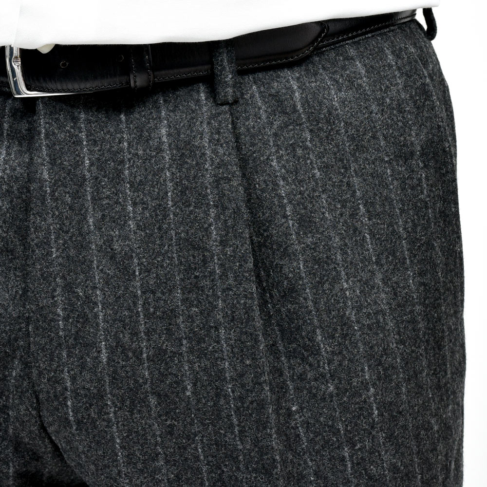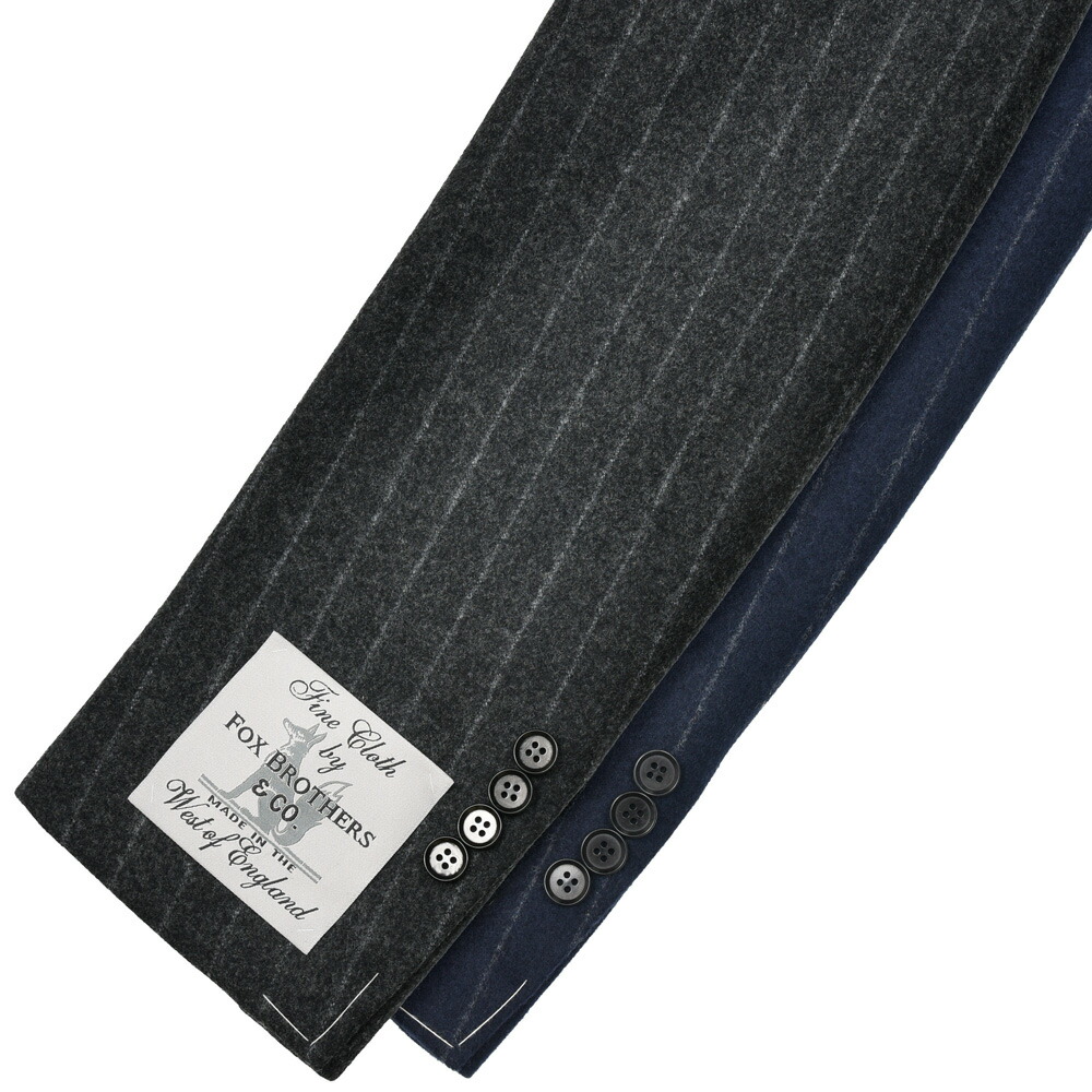 使用しているのは、385g/mというしっかりとしたウェイトを持つ、伝統的なチョークストライプのフランネル。