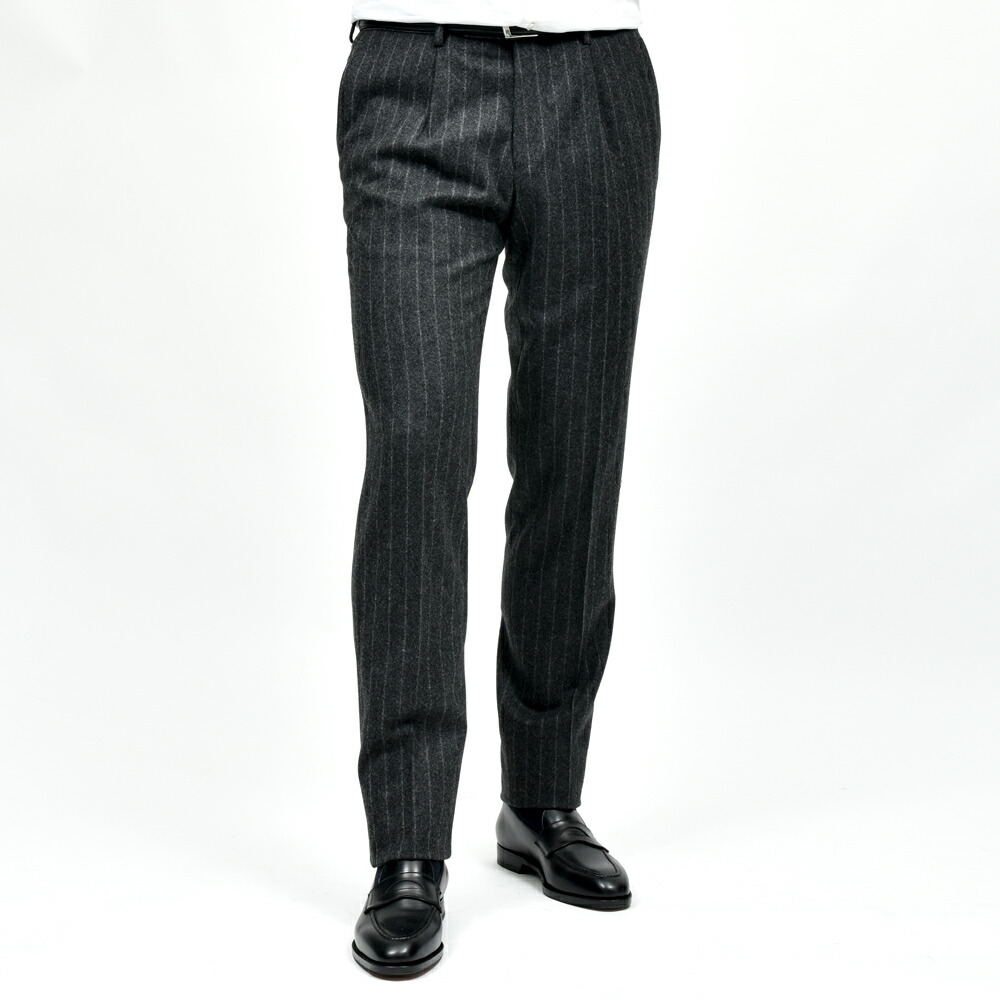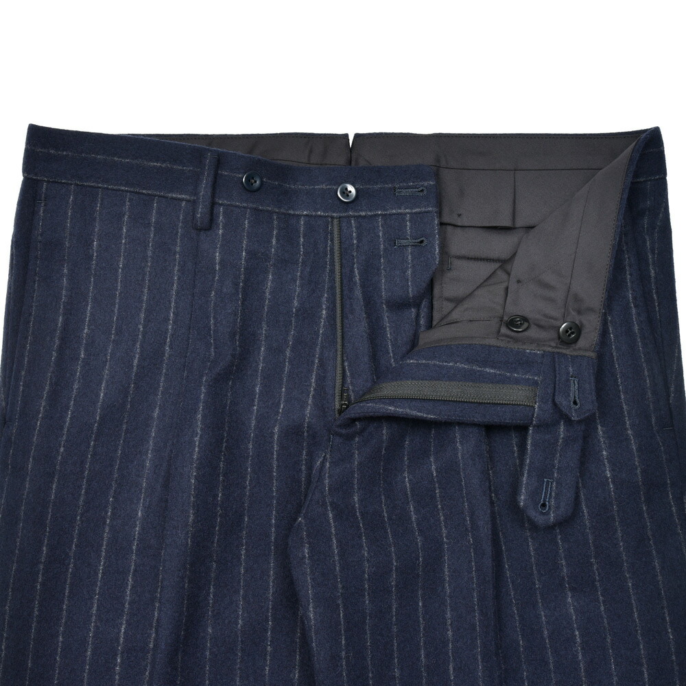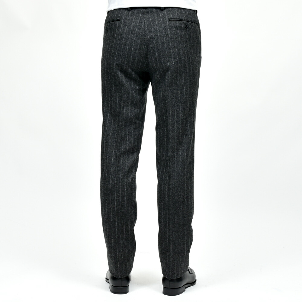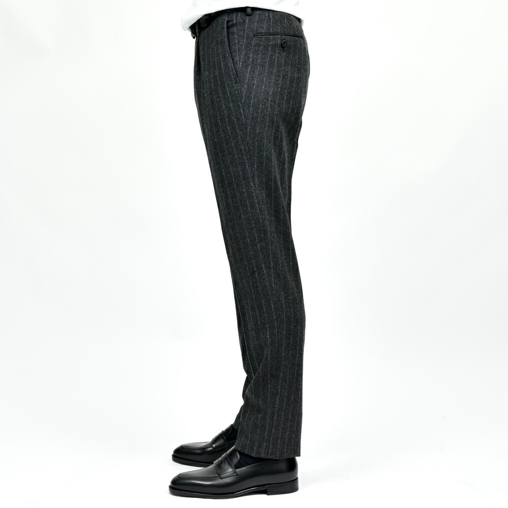 使用しているのは、385g/mというしっかりとしたウェイトを持つ、伝統的なチョークストライプのフランネル。