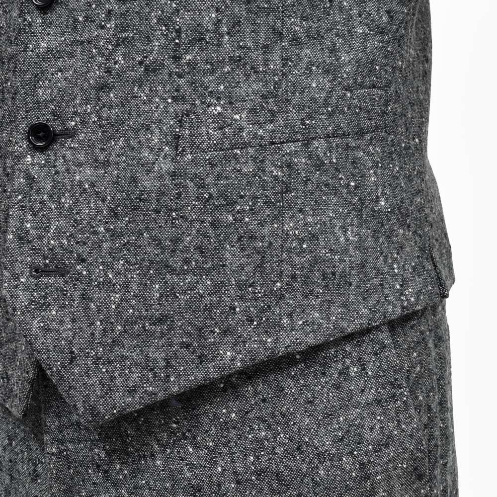 ほっこりし過ぎないドネガルツィードのジレ、色味のバランスが非常にこなれていますね。特別なデザインはありませんが、共生地でご用意しているジャケット、パンツと組み合わせることで、このジレの存在意義が確かなものになります。 なくても困りませんが、あると確実にスタイリングの完成度が上がる、そんな存在です。 スタッフ 泉 |