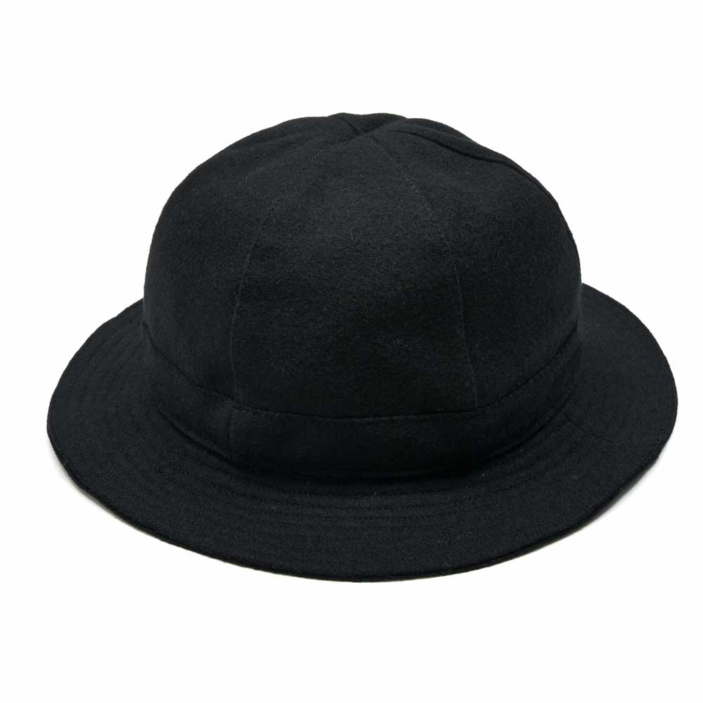6パネルのメトロハット、似たタイプでバケットハットがありますがこちらはトップの部分が釣鐘型になっています。丸みがありソフトなメルトン生地と相まって柔らかなイメージを演出してくれる存在。リラックス感とウォーム感を付加してくれる逸品になっています。