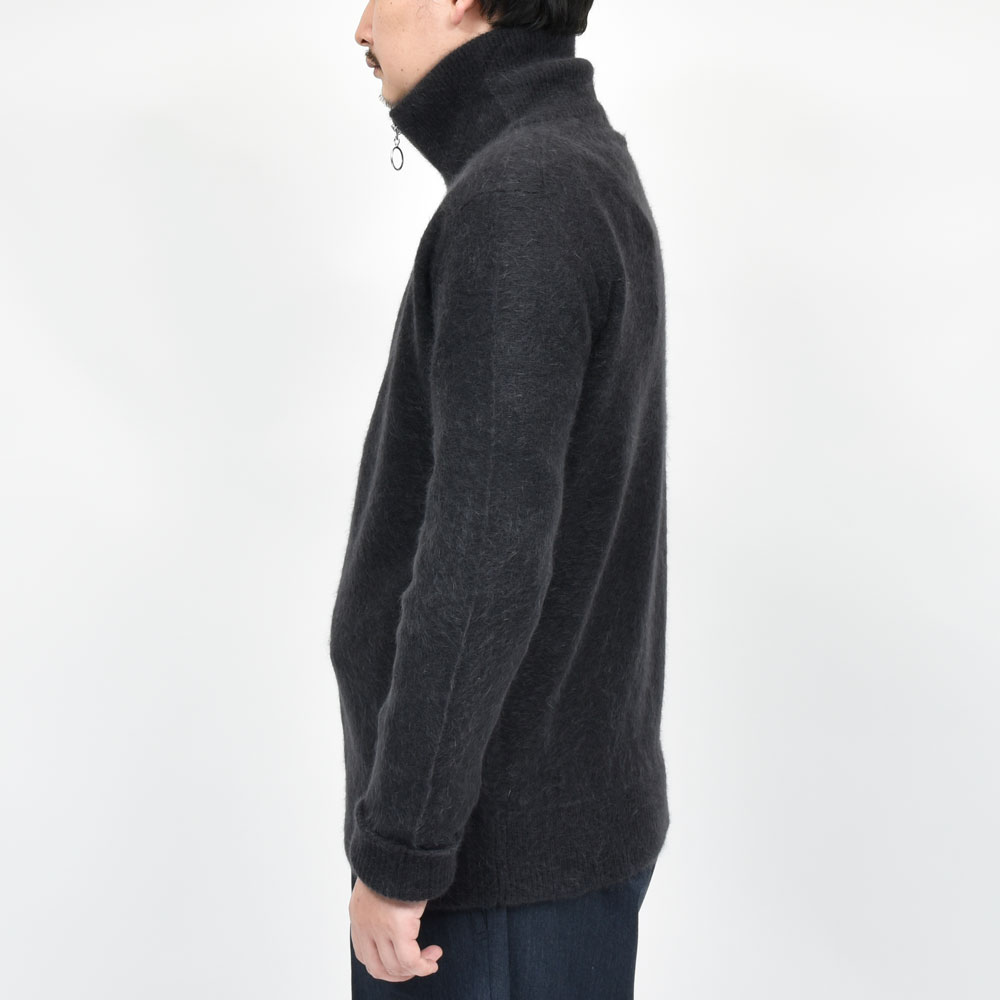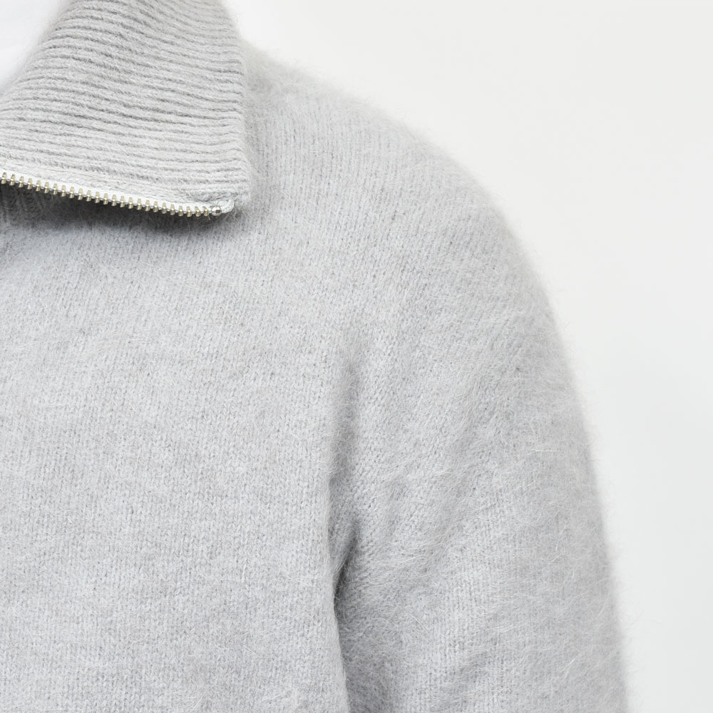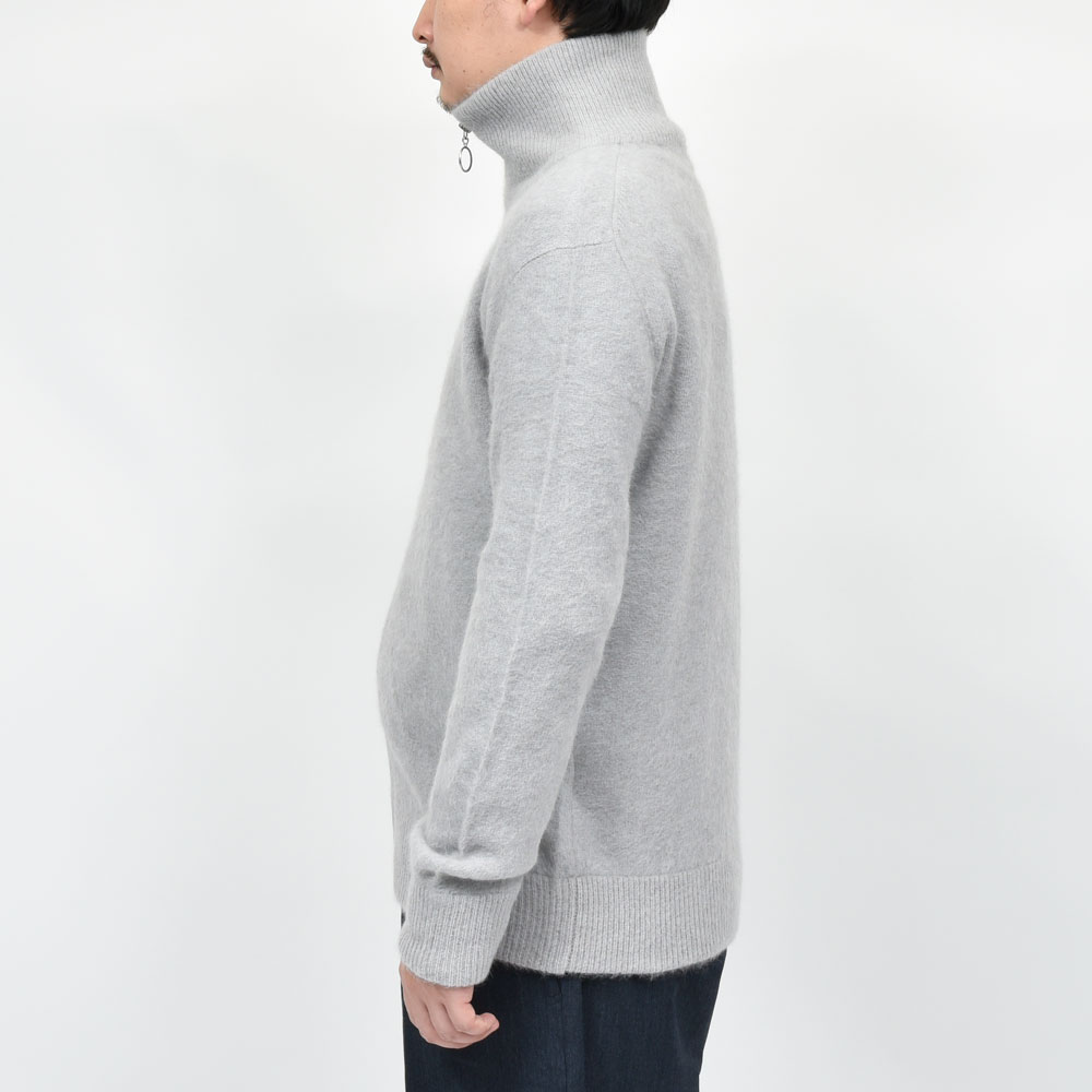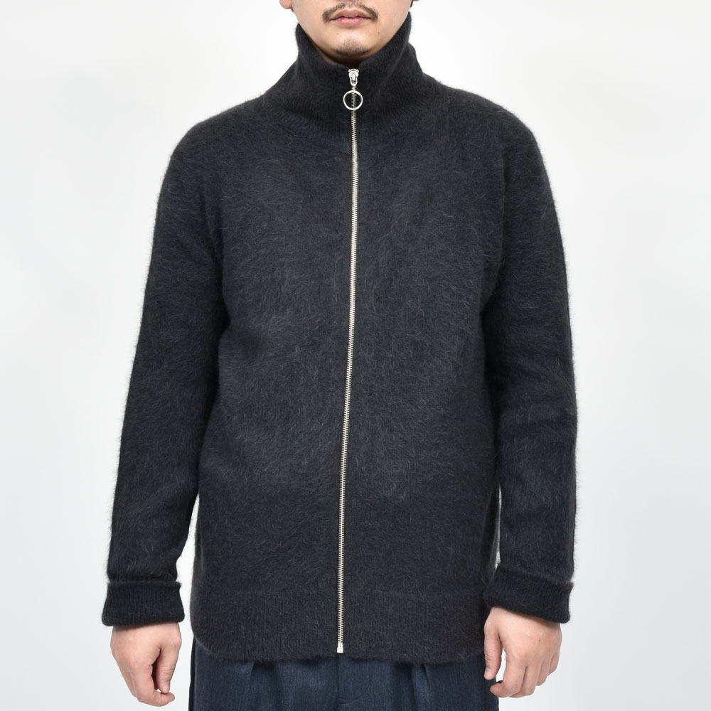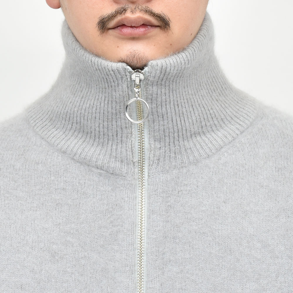 クルーネック、カーディガン、と来まして今回はドライバースニットを模したタイプになっています。構成としては至ってシンプルなものになっていまして、シングルジップに高めのネック、程よくゆとりがあるのでインナーにもアウターにも応用できてしまう汎用性の高さがあります。