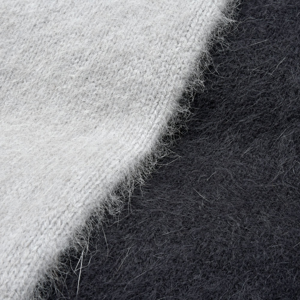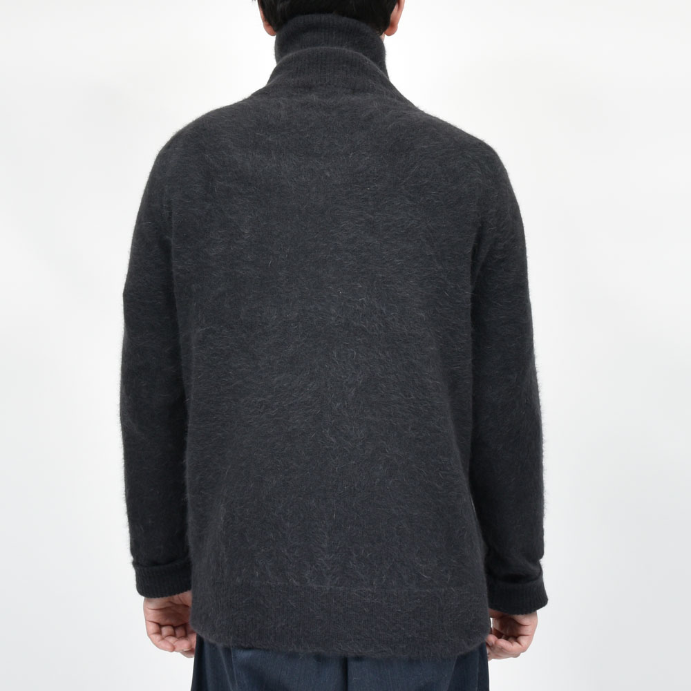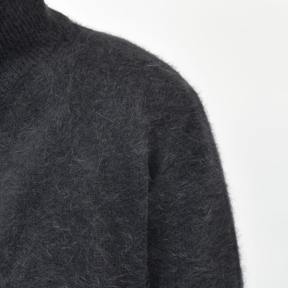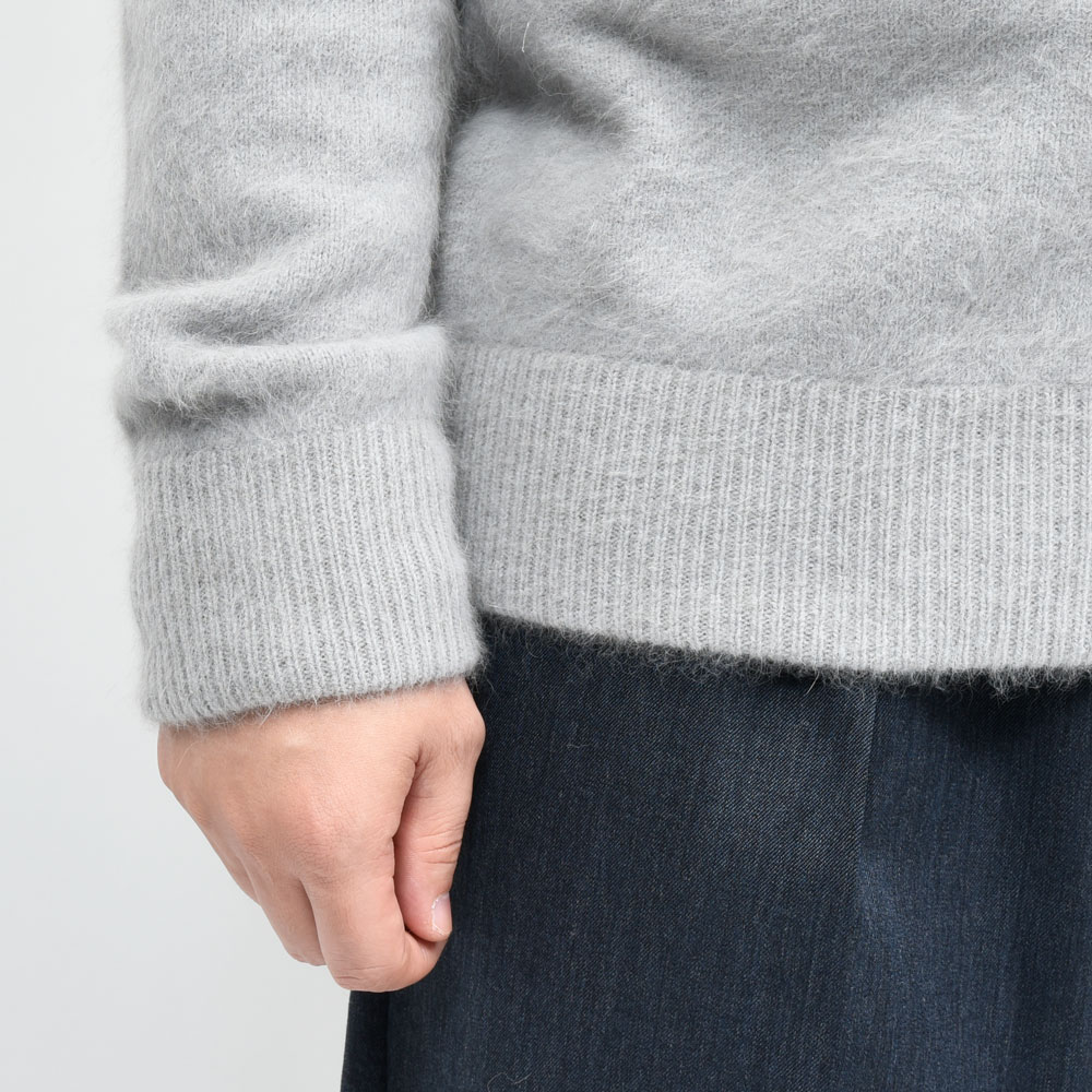 RENCONTRANT(レンコントラント)的、秋冬の推し素材と言ったところでしょうか。ブルーフォックスのウールを用いたニット、ほどよいシャギー感は化繊にはない艶っぽさを感じさせてくれます。