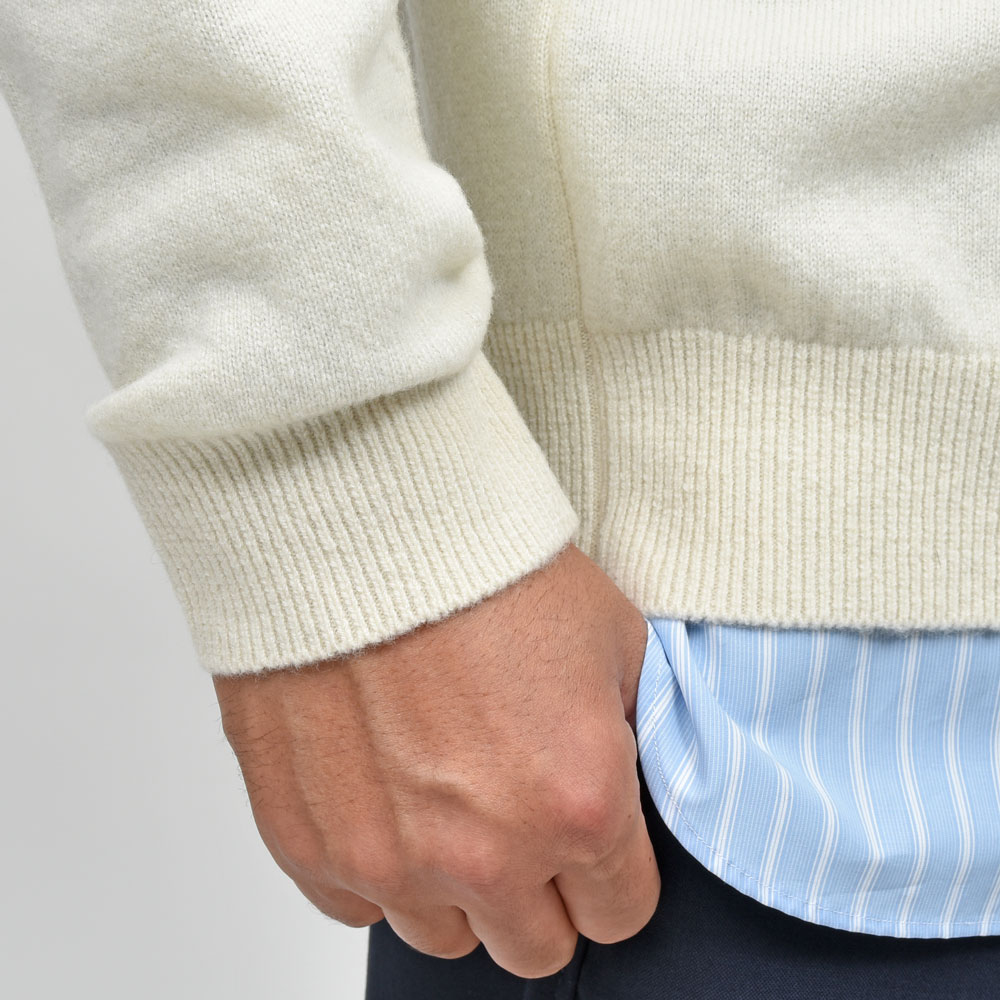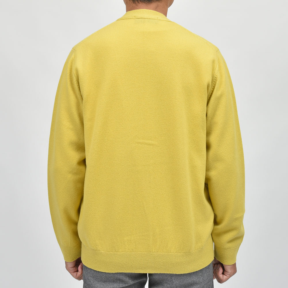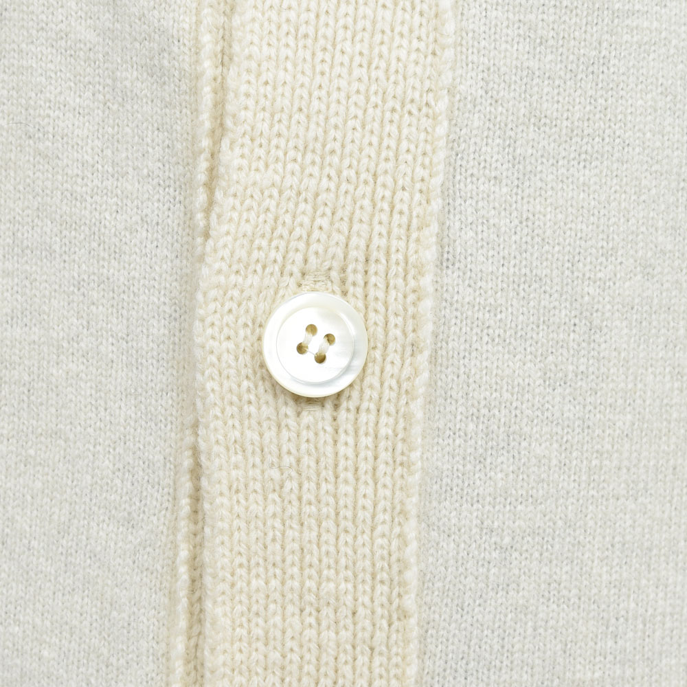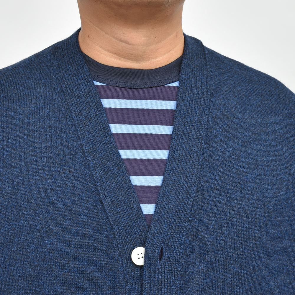ただ作りに関してはこだわりが発揮されていまして、カーディガンにありながちなネック部分のリブが寄れてしまわないように前立て部分を7ゲージにしてフィット感を高めたり、シルエットも過度にスマートにしすぎず、身頃は12ゲージの糸を使うことでクリーンな雰囲気を強調。いつ着ても適度なリラックス感を演出できるようにバランスを整えています。