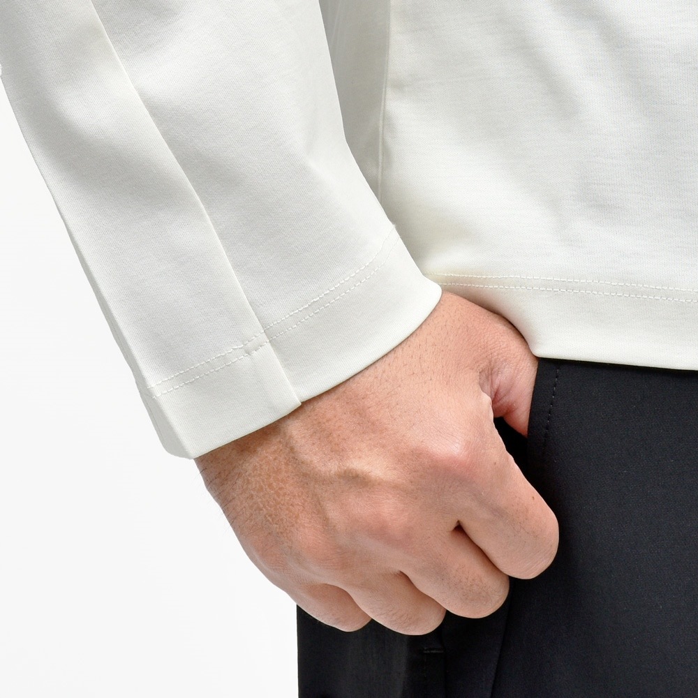 Laminar(ラミナー)らしさをどのようにデザインに取り入れるか?というのがテーマになっているカットソーで、ベーシックなクルーネックのロンTというベースを崩さずにテクニカル&ストリートの要素を取り入れるべく製作された一着です。