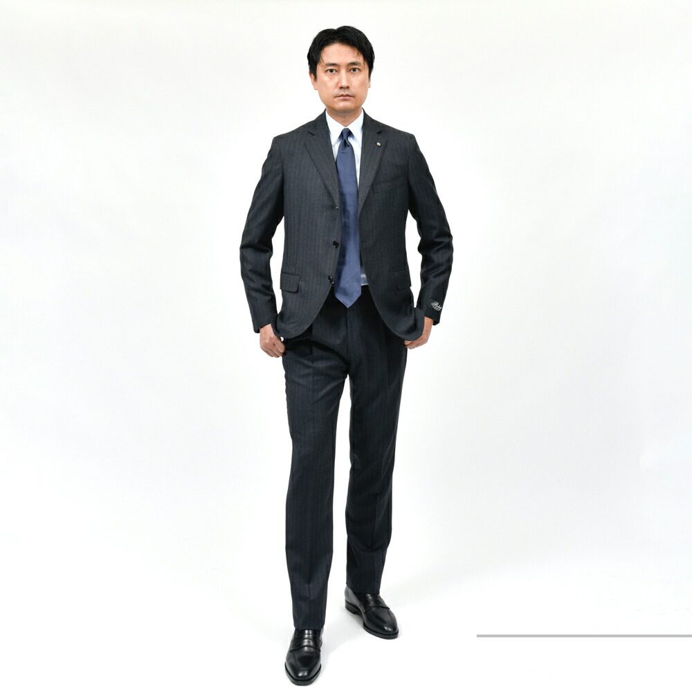 ウールピンストライプ3B1プリーツスーツ 17156204020