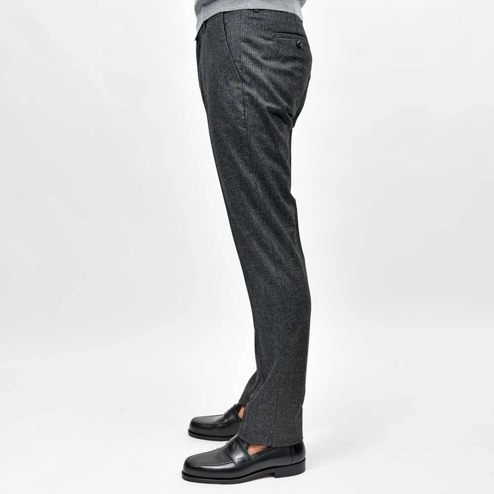 シルエットは見た目通りスマートなフィットになっています。イタリアらしいキリッとしたスタイルを形成する上で、こういった足のラインを綺麗に見せることが出来るものは必要不可欠。