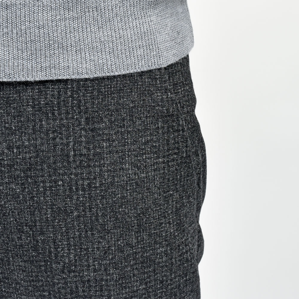 遠目からだとメランジにも見えなくはないチェック、カラーはチャコールグレーなので幅広いスタイルでお使い頂けるのではないかなと思います。