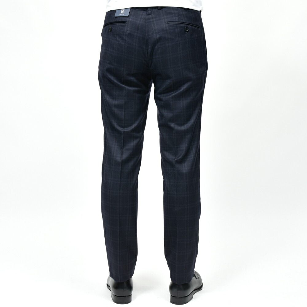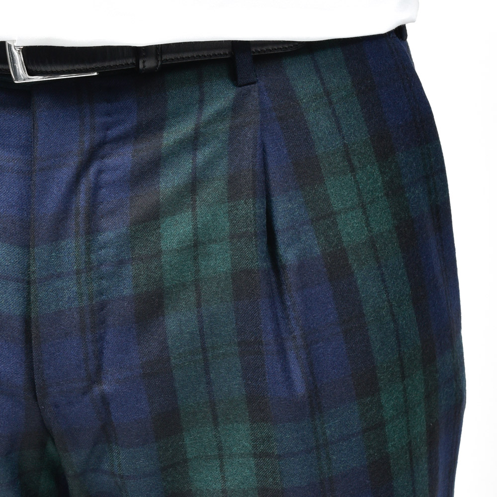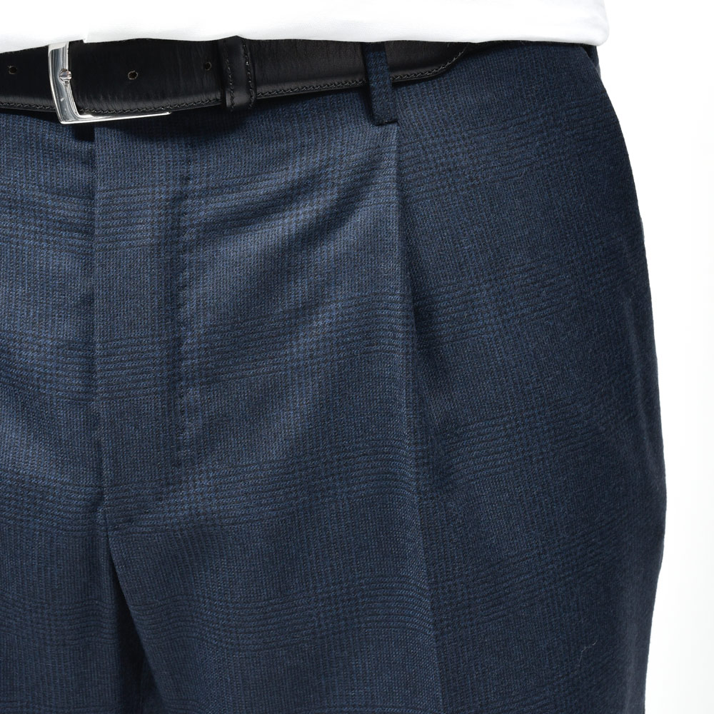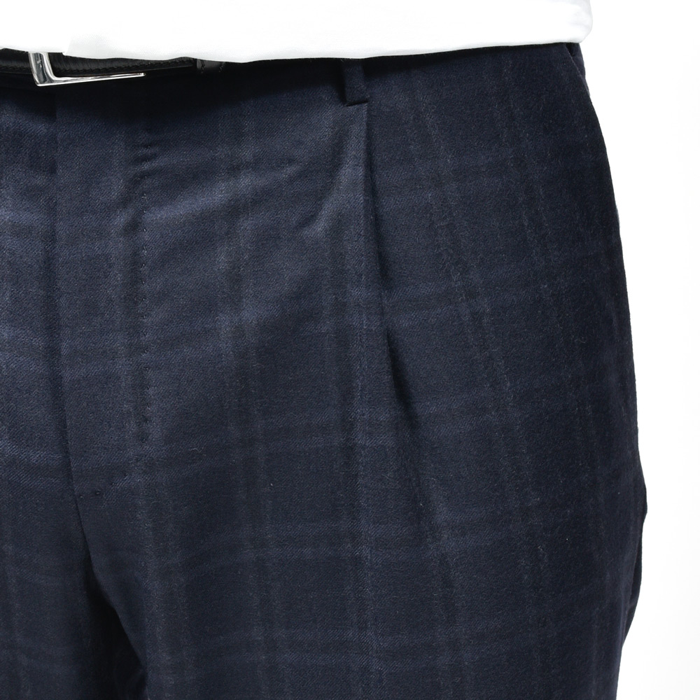 SUPER100’sウールフランネルのしなやかな質感に、英国らしいチェック柄が美しく映える一本です。