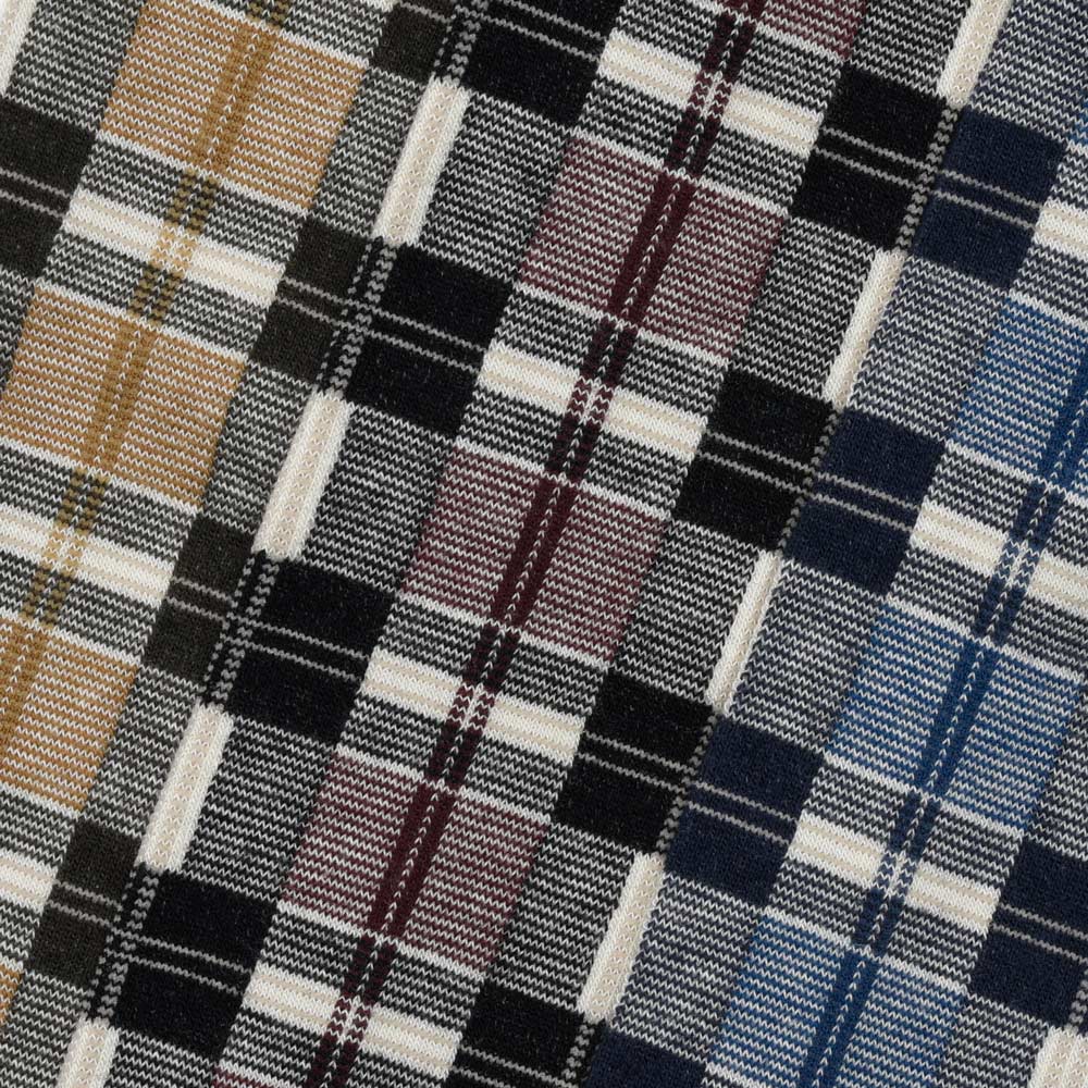 こちらのソックスはクラシックなチェック柄をベースに、コットンにナイロンとカシミヤをブレンドした生地を使用。ふっくらとしたタッチと程よい伸縮性が特徴で足を優しく包み込みながらしっかりと保温してくれます。ロング丈の設計はブーツインにも適しており、スキー後のリラックスタイムや真冬の外出時にも頼れる存在です。
