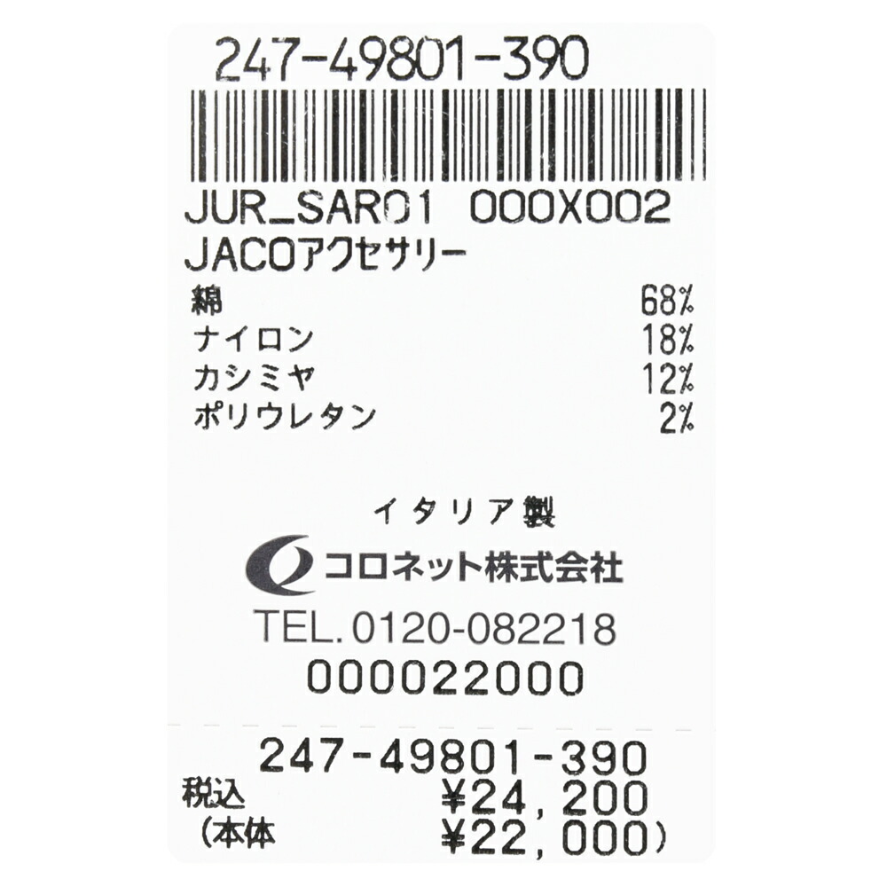 : コットン68% ナイロン18% カシミヤ12% ポリウレタン2%