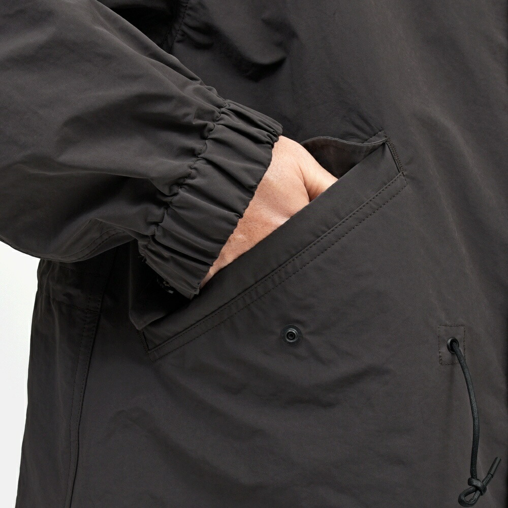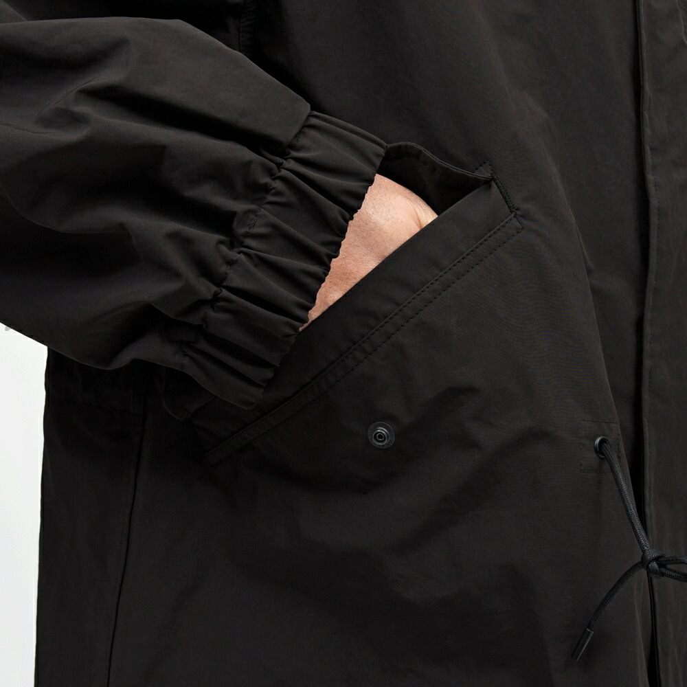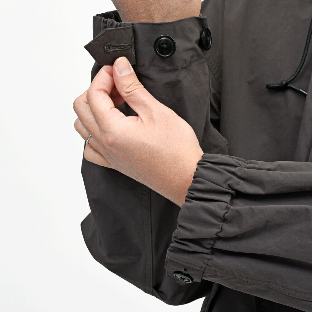 アンライニングで軽く仕立てつつ、撥水効果があるので気候も気にしなくてよいのでインナーのスタイリング次第でオールシーズン着て頂けるモデルですね。