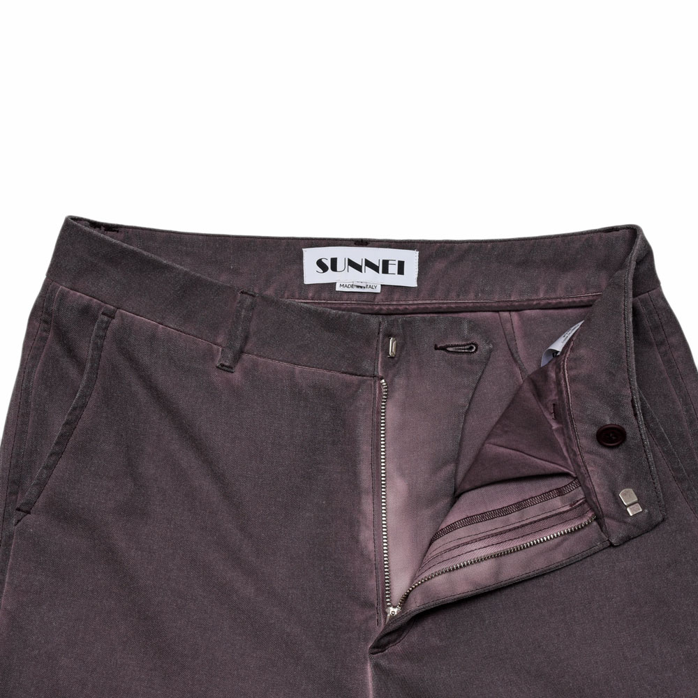 SUNNEI(スンネイ)では今シーズン様々なアイテムで使用されているウールを染色した生地、独特の発色はこのブランドならではのセンスによるものです。落ち着きがありつつも他にはないプラムカラー、スタイリングのアクセントとしても有用。