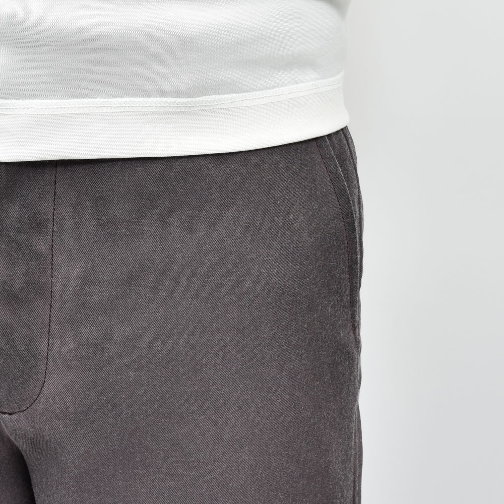 独特な加工感のあるウール生地で、縫製部分にコントラストが生まれ、ニュアンスのある色合いが表現されています。