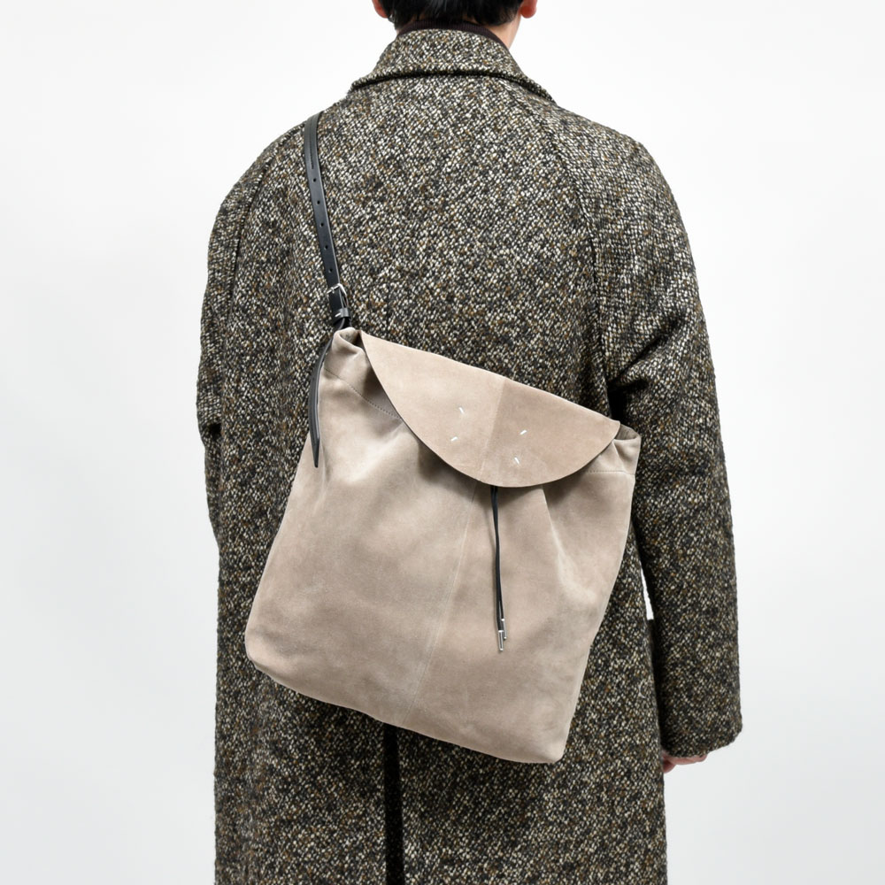柔らかなスエードをボディに使用したMaison Margiela(メゾン マルジェラ)のドローストリングホーボースモール。同ブランドのバッグは本当に多種多様でありますが、その中でも特にこちらのモデルは力みのないリラックスした表情になっています。