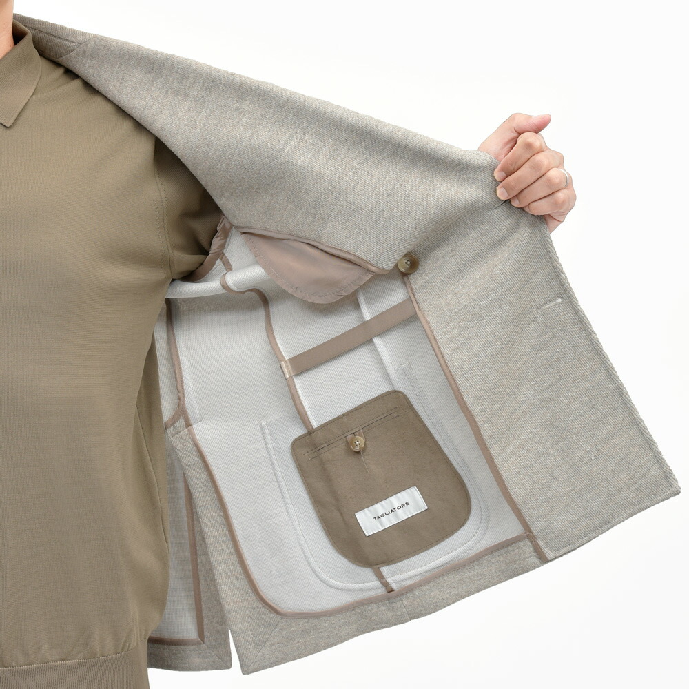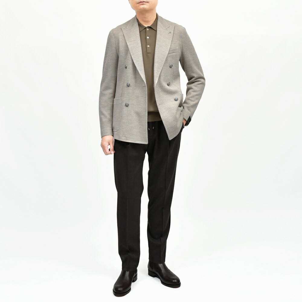 『カジュアルかが進むゴルフシーン、だからこそジャケットスタイルは大切にしたいと考えています。』 TAGLIATORE(タリアトーレ)のDARRELダレル、シングルジャケットDAKARダカールと同じ背裏無し・袖裏無しの軽量仕立てのダブルブレスとモデルになります。 何せ軽い、これが全てを物語っている様に思います。 あくまでもテーラリングのテクニックを駆使したジャケットでありながら、シャツジャケットの様に、シャツジャケット以上に軽く着心地良く仕立てられており、用いる生地によって雰囲気をコントロールし、さまざまなシーンに合わせて着られるように設計されているところが人気のポイントです。 こちらはguji golfカテゴリーのセレクトなので、より動きやすく、コンフォート性能の高いニットジャージ生地をチョイスしました。 クルマの運転時もストレスがなく、これからスポーツをするぞ・・・という気持ちを高めることができますし、プレー後のリラックスタイムも肩肘張らずに過ごすことができ、そのまま気持ちよく食事に向かうことが可能ですね。 (画像のスタッフは182cm、76kgで50サイズを着用しています。) ・モデル:DARRELダレル 副資材をほとんど用いずシャツジャケットの様に軽く、且つ本格ジャケットさながらの立体感をもって仕立てられているモデル。 シングルブレストはDAKARダカール、ダブルブレストはDARREL ・ファブリック:テックウールニットジャージ ポリエステル40% ウール30% アクリル30% 420g/m ・ストレッチ性あり ・ナチュラルタッチニット ・フロント6ボタン・腰パッチポケット・胸バルカポケット・内ポケット裾左右(胸部分には無し) ・ラペル巾:10.5cm ・袖:アンフィニッシュド(本切羽・開き見せなどの釦付け修理が必要) |