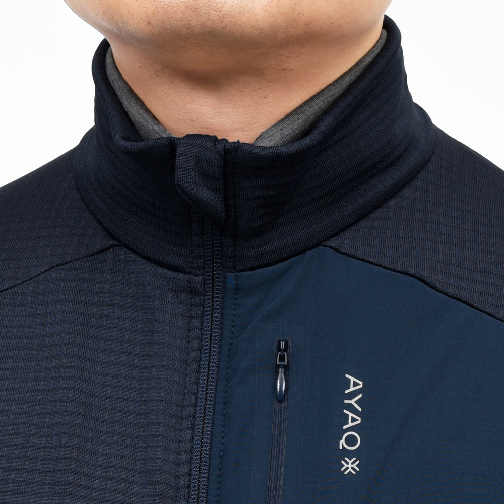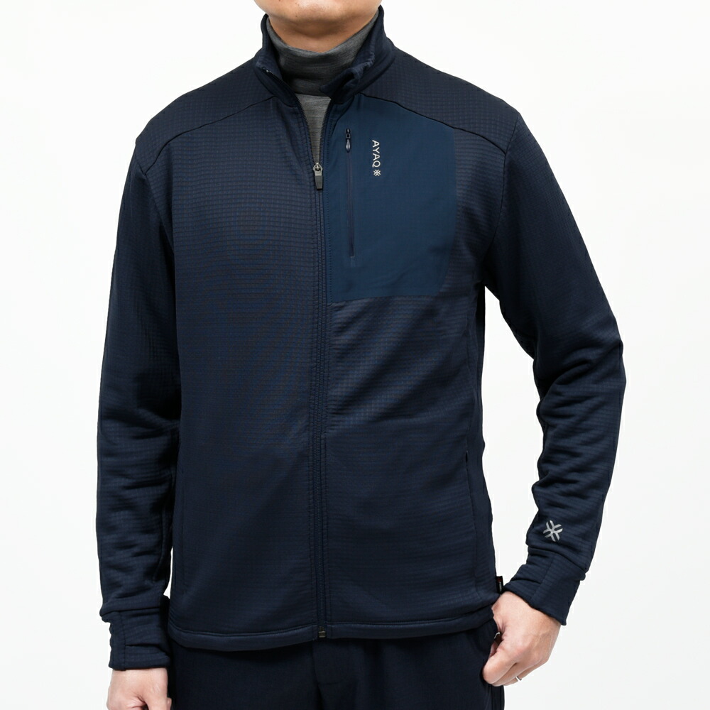 AYAQ(アヤック)ならではのアクティブセカンドレイヤージャケット“KOKANEE”、ポーラテック社のワッフルフリースを用い、通気性の良さとストレッチ性の高さ、軽さ、断熱性を担保されています。