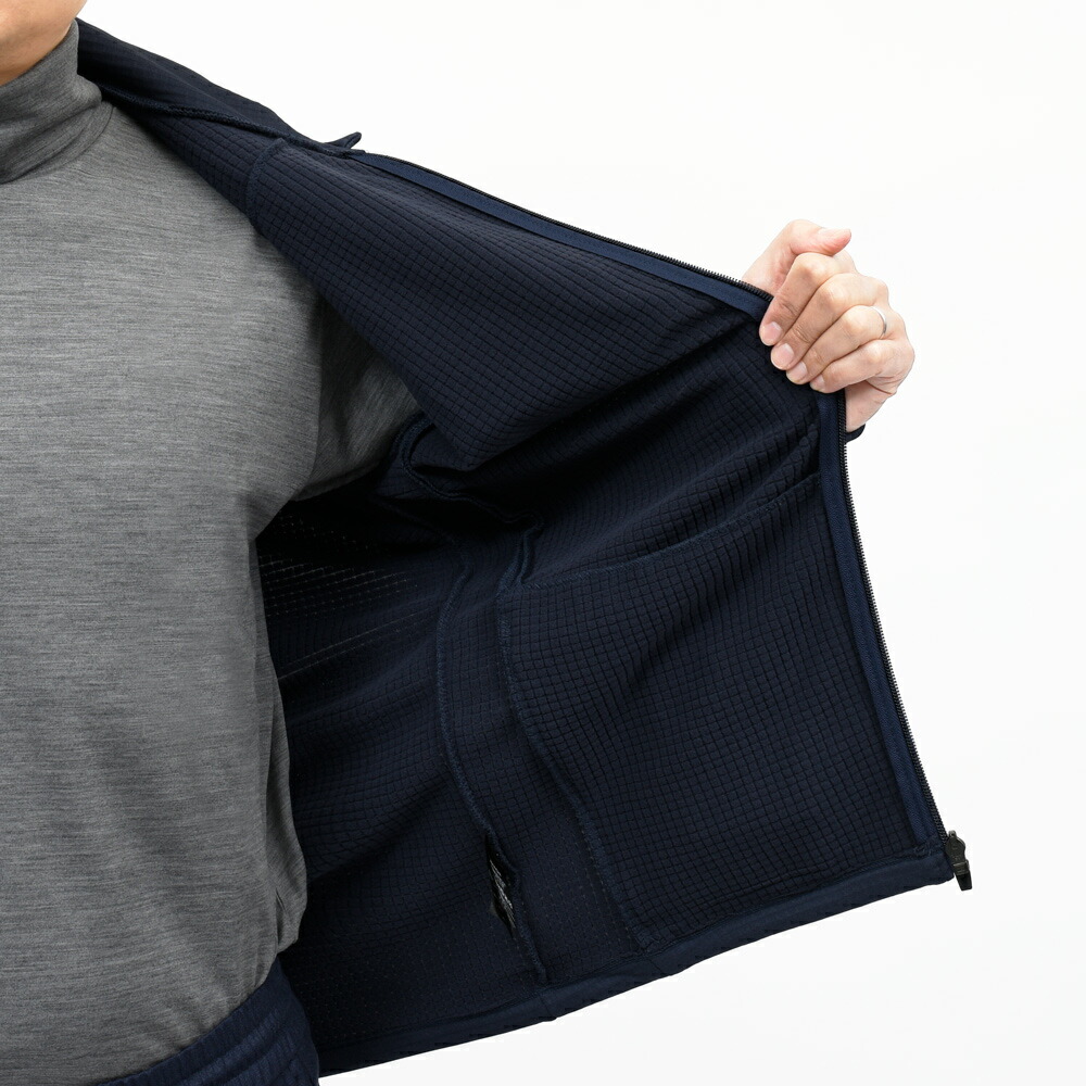 汗を逃がしやすい機構であることから体温調節を容易にし、快適性能を高めているところがこのジャケットの特徴ですね。