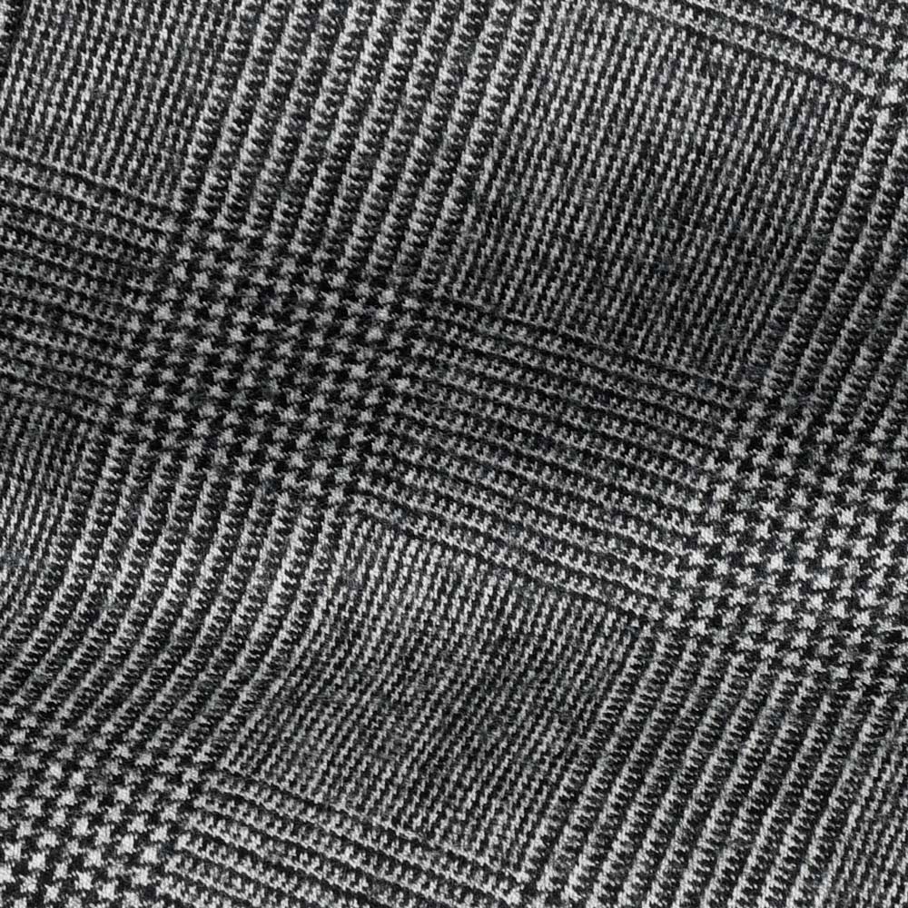 上質なウール100%のサキソニーに細かなグレンチェックを織り上げ、柔らかな艶と落ち着いた深みのある表情を備えています。