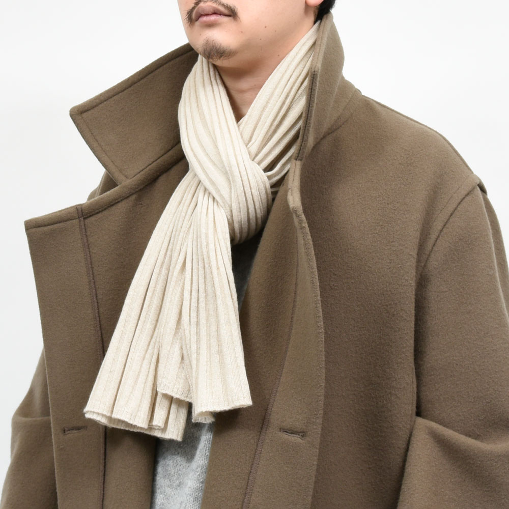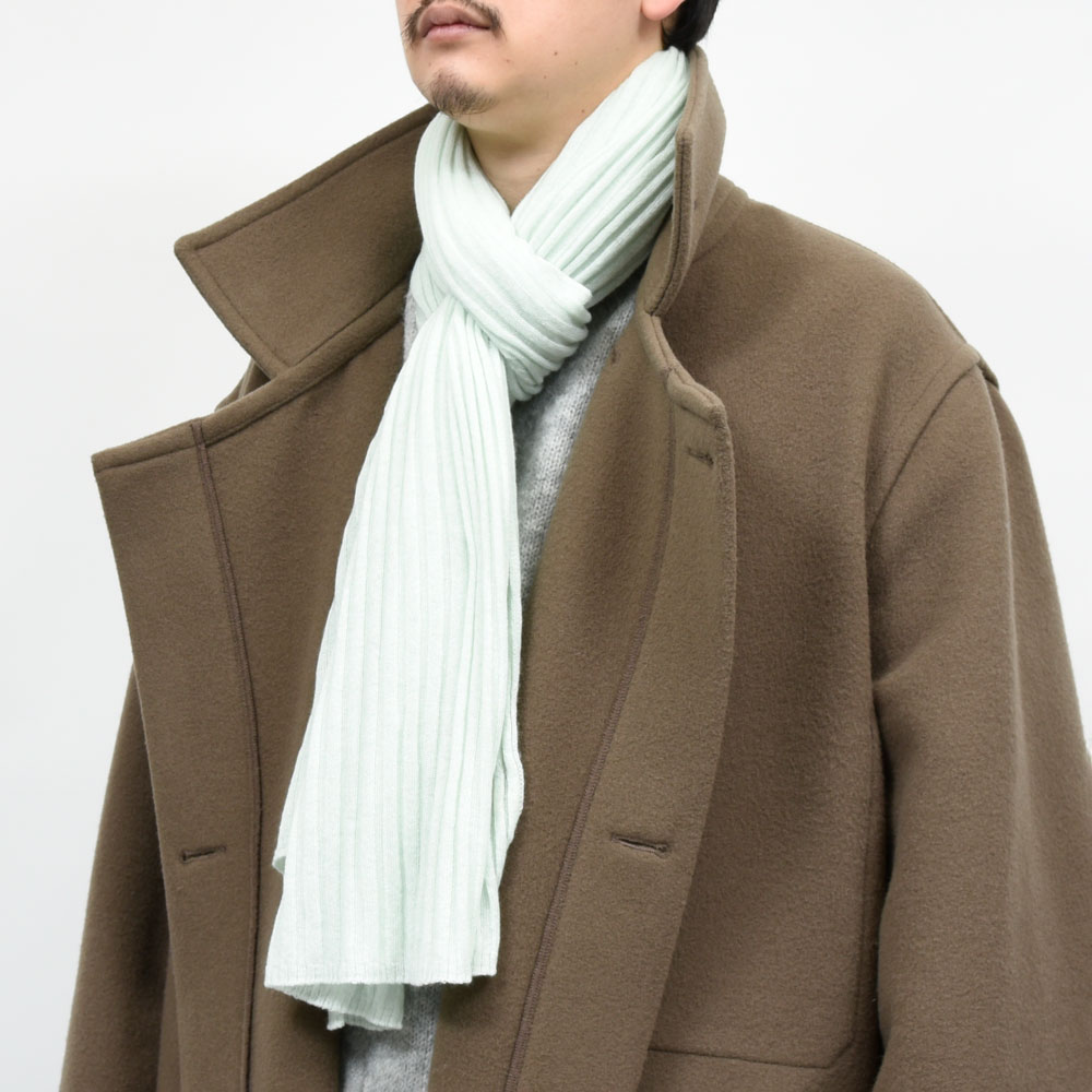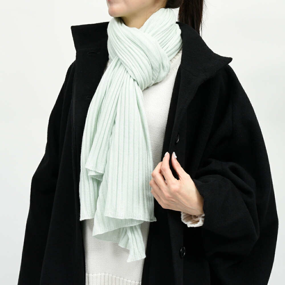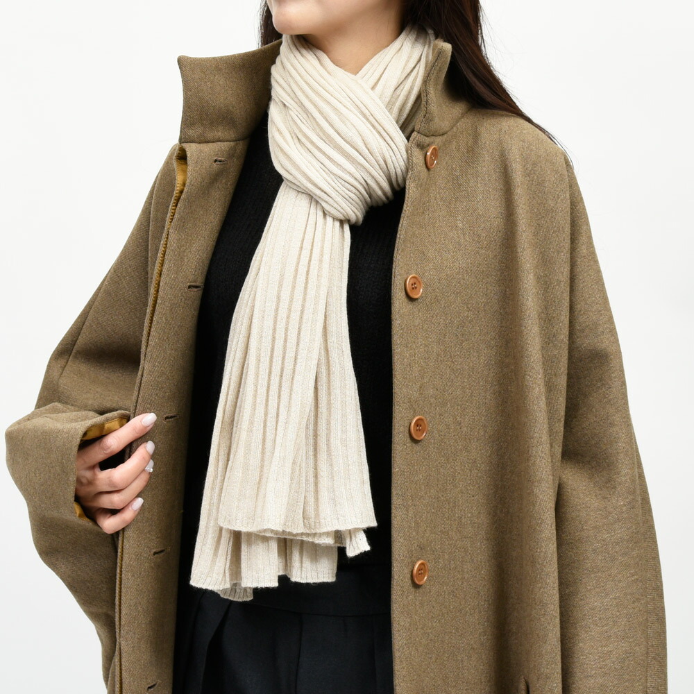 AMBELL(アンベル)のカシミヤシルクストール、リブ編みの凹凸感が巻いた時にアクセントとなってくれる逸品。カシミアシルクを用いていながらこのプライスという所にも驚きを隠せません。
