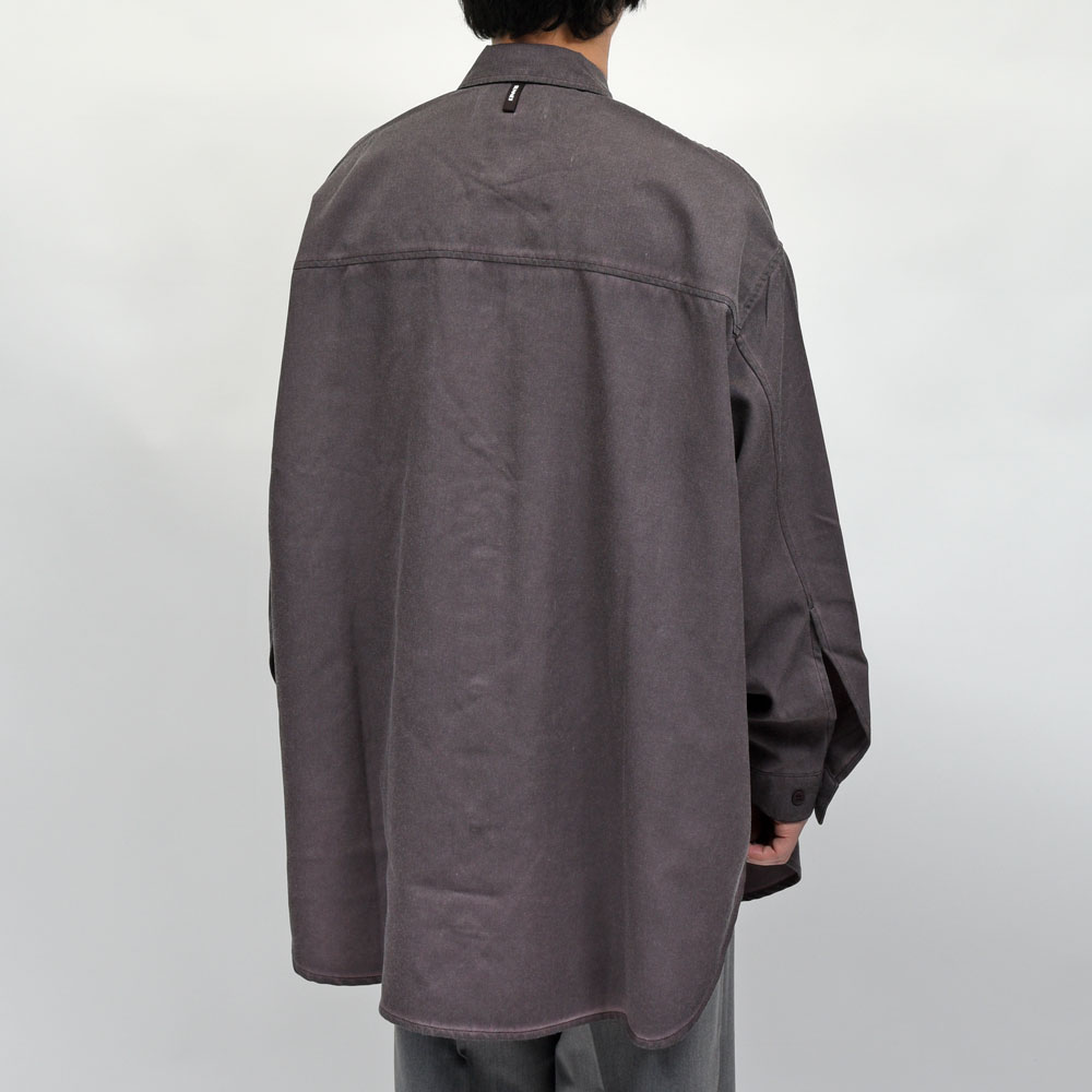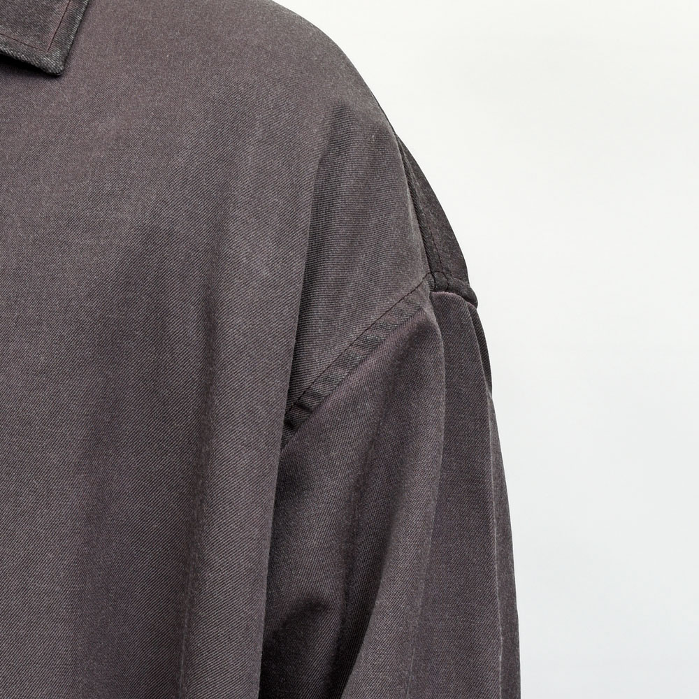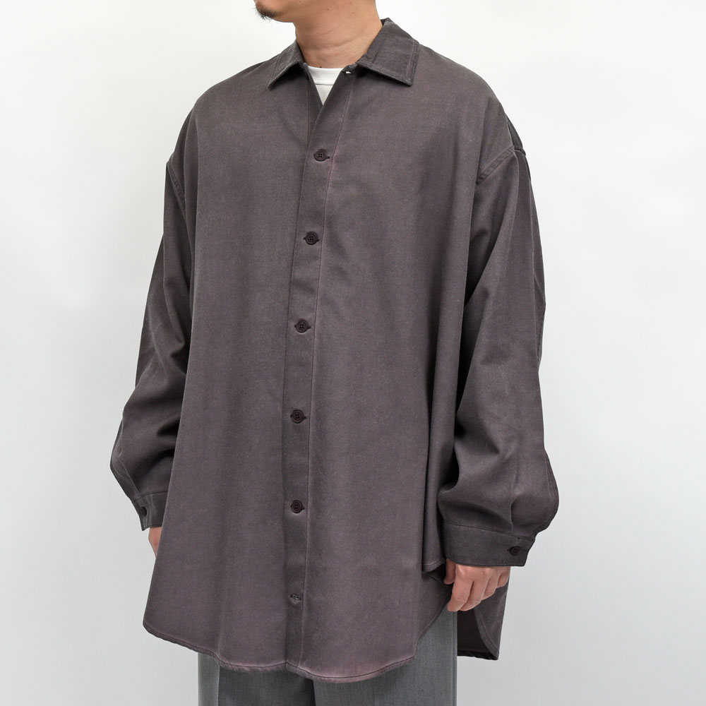 という事で、こちらのメガオーバーシャツ。ご覧の通りではありますが緩いを通り越してメガなサイジングになっています。フェード感のある風合いにマッチsしたリラクシングなシルエットは全体的にストリートな雰囲気を醸し出しています。とはいえ、作りの面ではかなり丁寧に作り込まれているのもポイント。