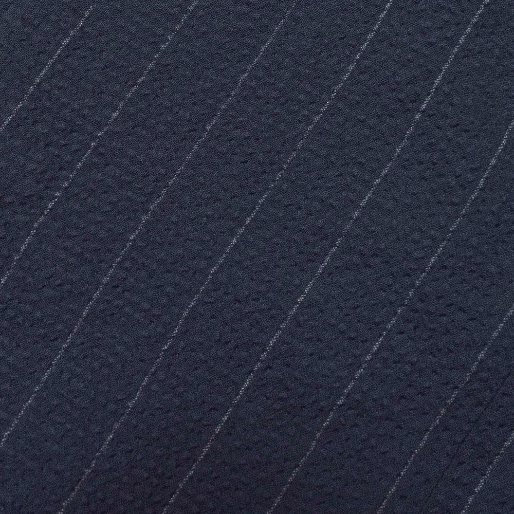 シアサッカーでワイドピッチなストライプ、しかもウールというちょっと珍しい生地を用いています。 大胆な柄でありながらそこまで押し出しが強くなく、程良いアクセントくらいに整えているところが良いですね。色のコントラストが控えめなので、スタイリングもしやすいように思います。 それにしても軽くて通気性に優れているので、着心地が良いですね。ガンガン着てもヘタらないので、春夏シーズンの強い味方になると思います。 スタッフ 西出 |