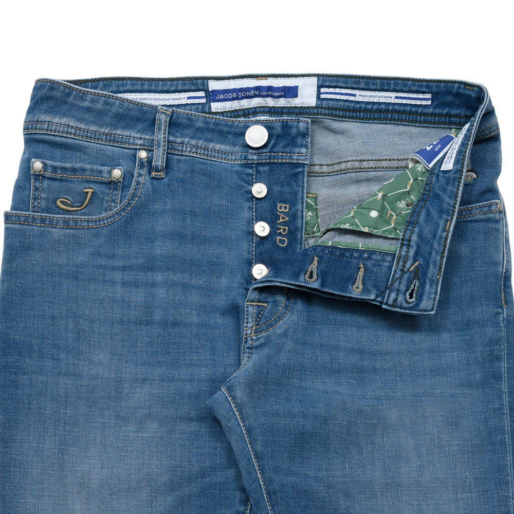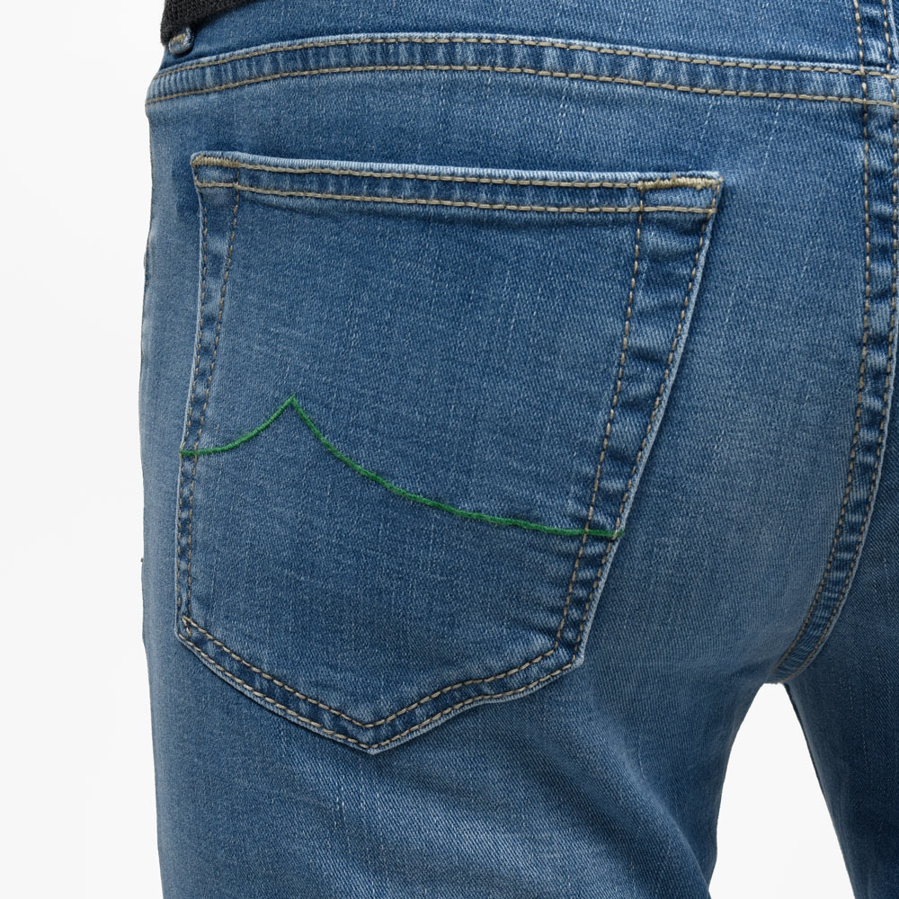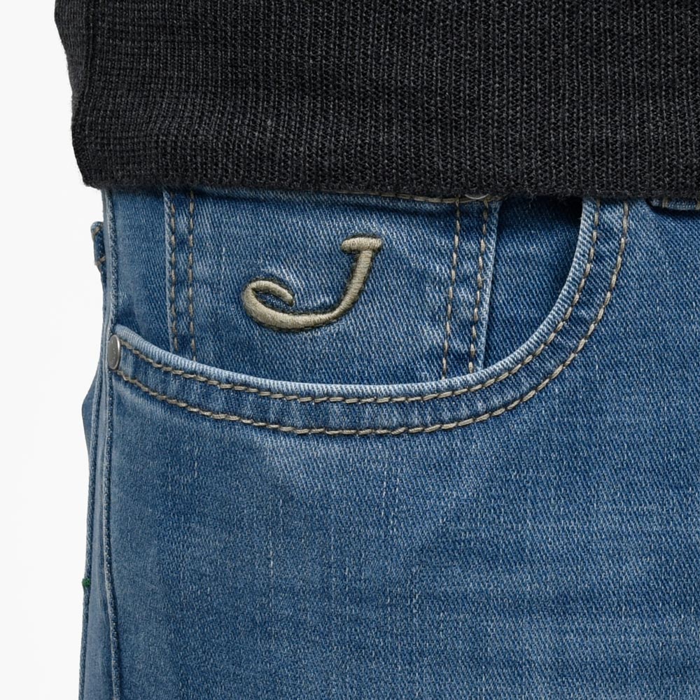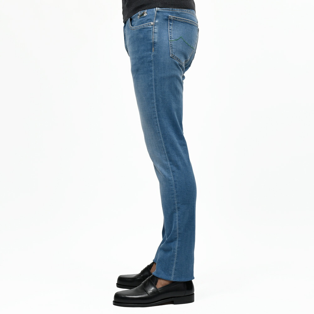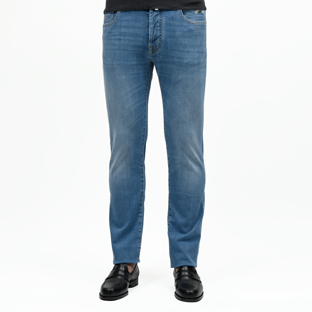 JACOB COHEN(ヤコブコーエン)の提案するこちらの一本はインディゴデニムにしっかりとウォッシュを施すことで、全体に色落ちを表現した表情豊かな仕上がりです。ヒゲの加工も明確に入り、特に膝付近は穿き込んだヴィンテージデニムを思わせるようなフェード感が演出されていて奥行きのあるデニムの表情を楽しめます。