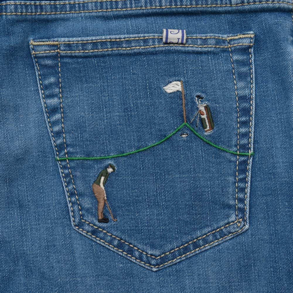 バックポケットの刺繍、なぜそこにゴルフバッグが、、、と思わなくはないですが、モチーフとしてはよりわかりやすくなる感じですね。