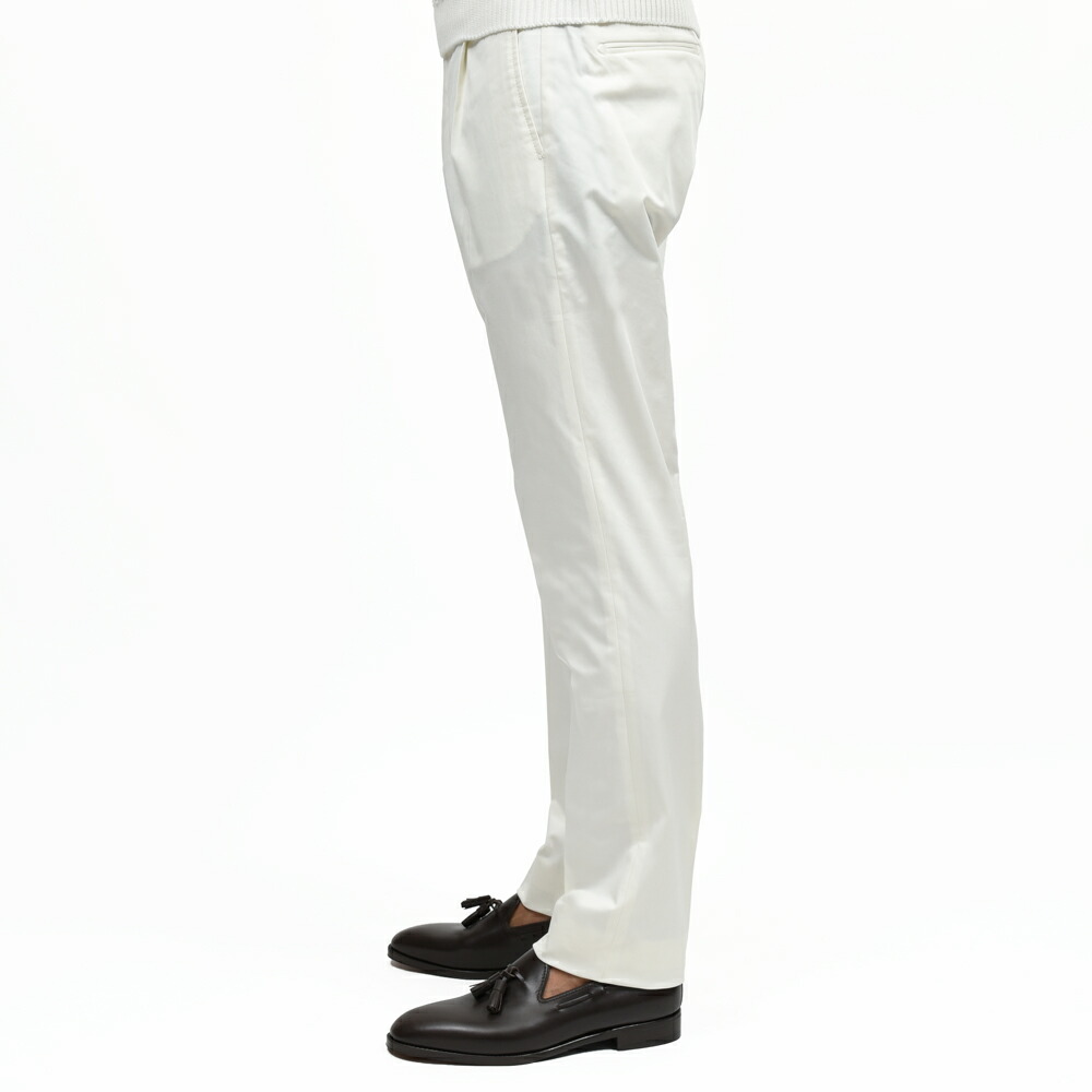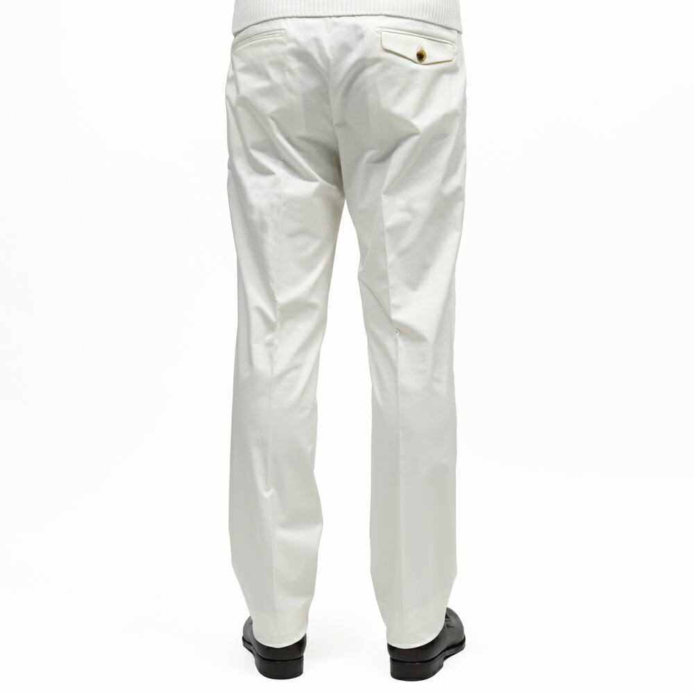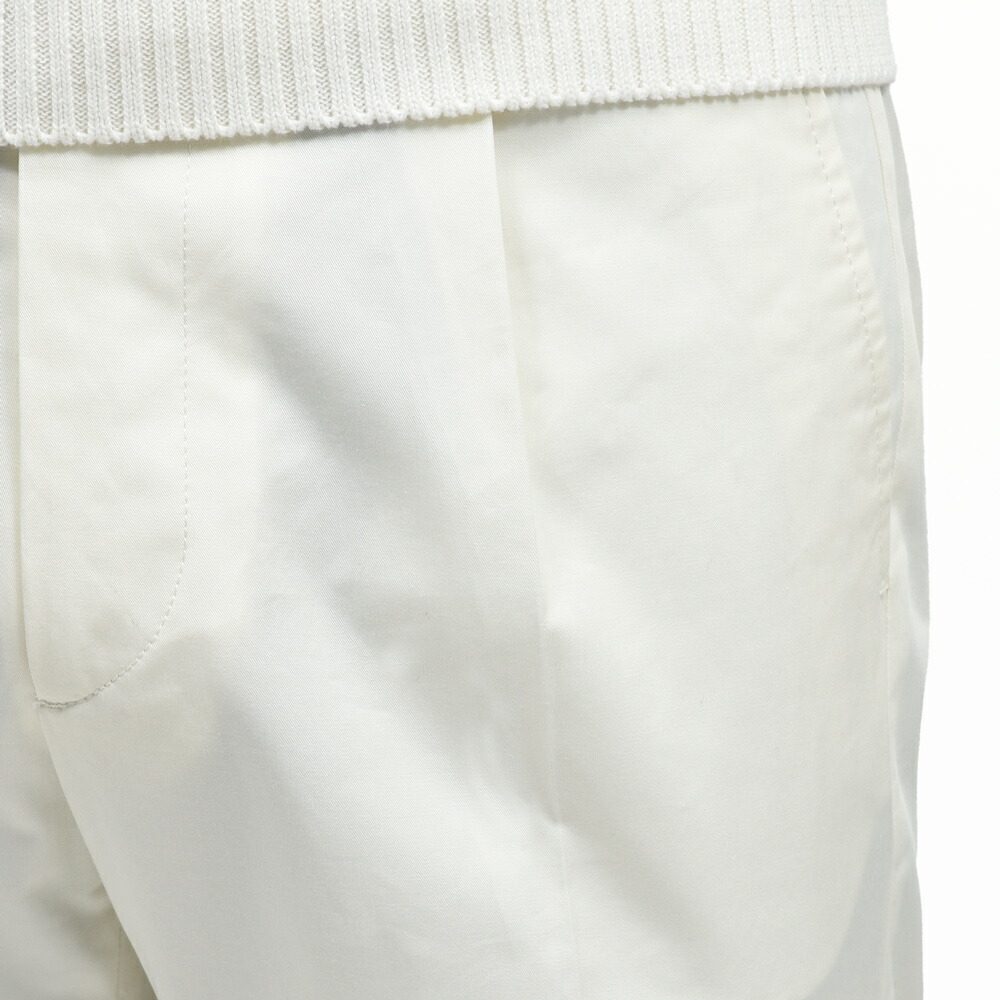 パリッとしたタッチのコットンにストレッチ性を加味することで穿き心地を劇的に向上させた定番ファブリック。