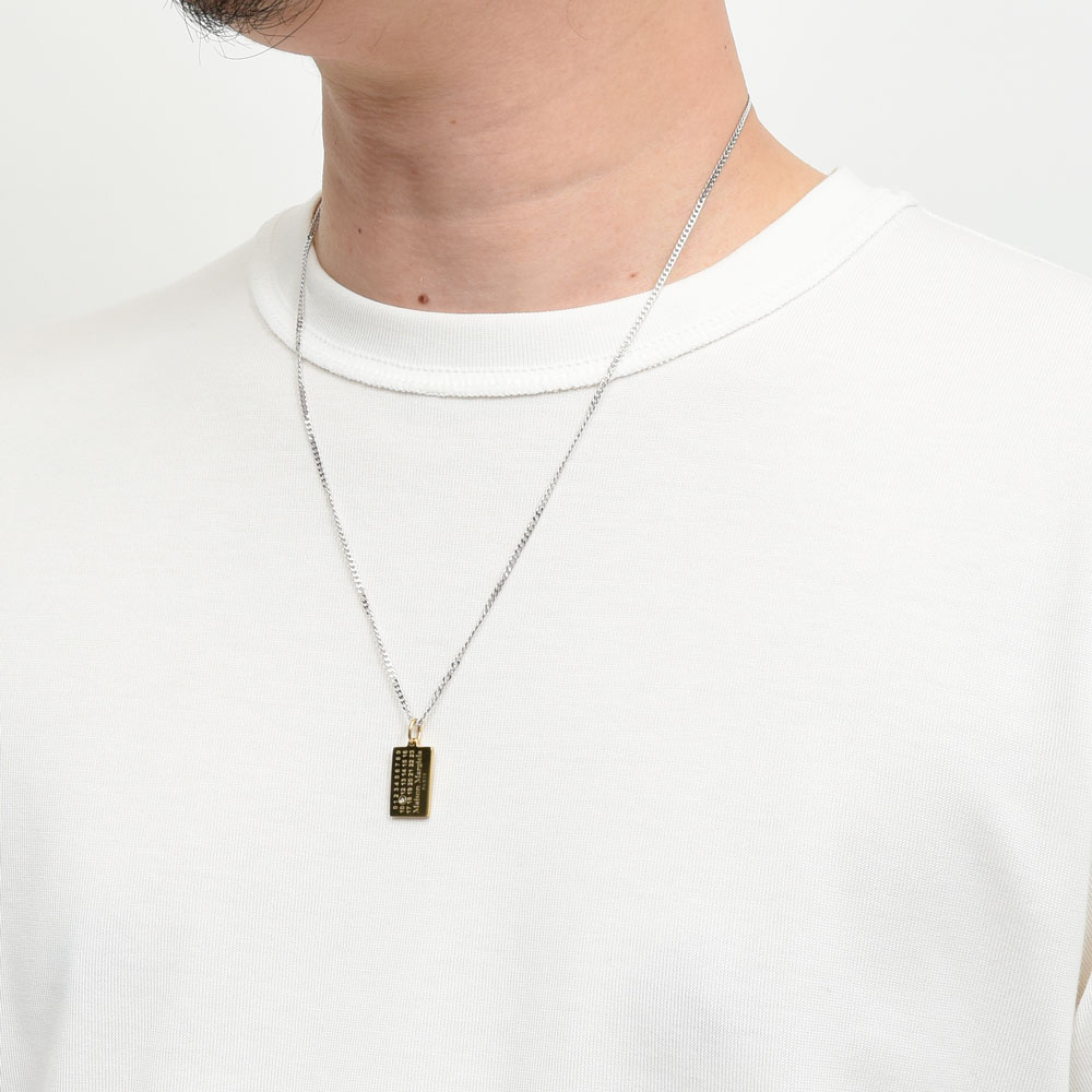 Maison Margiela(メゾン マルジェラ)のアイコニックな表現の一つであるナンバリングをデザインに取り入れたシルバー925のネックレス。内側はシルバーそのままのカラーで、表側はイエローゴールドの鏡面仕上げが施される事で煌びやかな印象に。