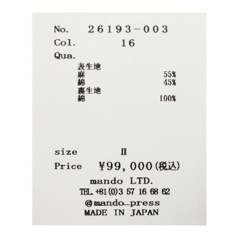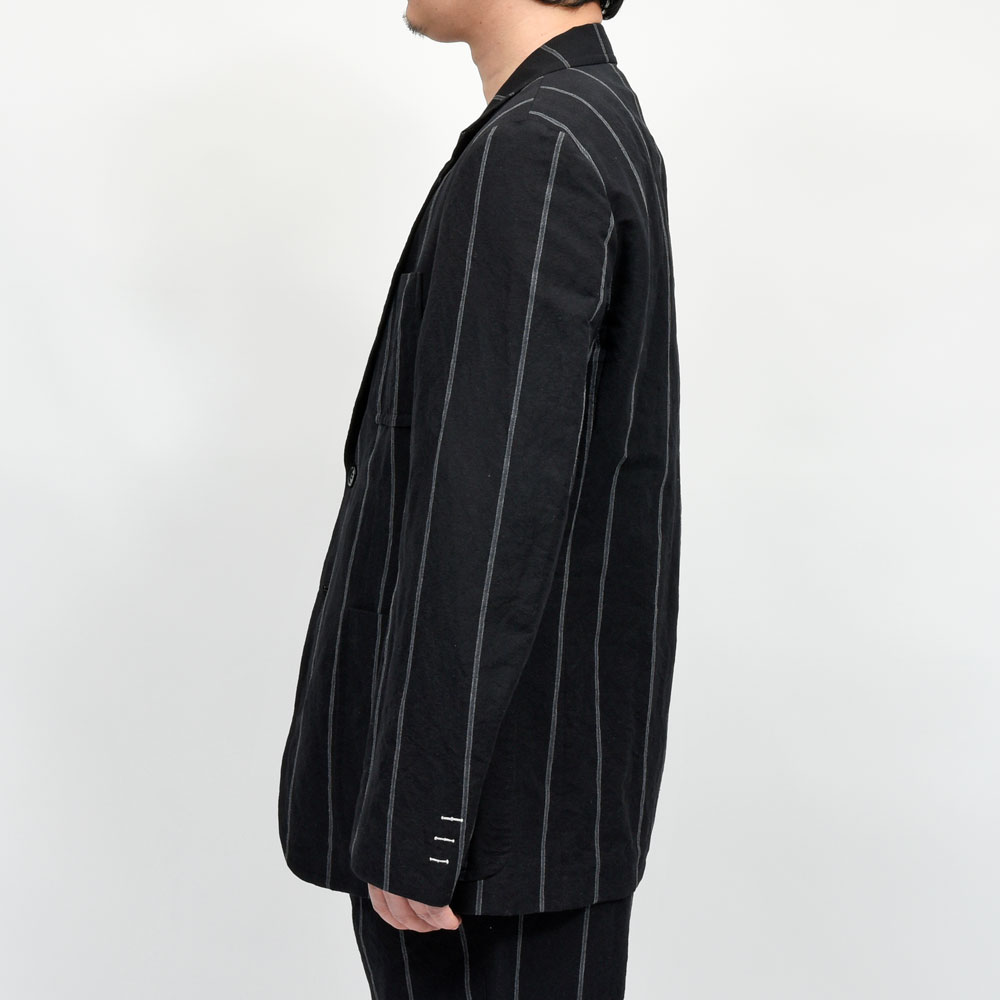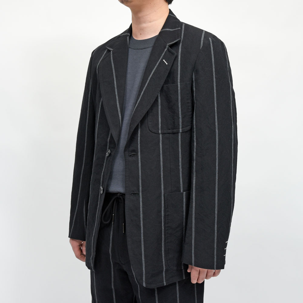 リネンコットンを用いたmando(マンド)のジャケット、抜け感のある生地をベースにストライプをセットすることで、適度な緊張感を漂わせたデザイナーズらしい一着になっています。