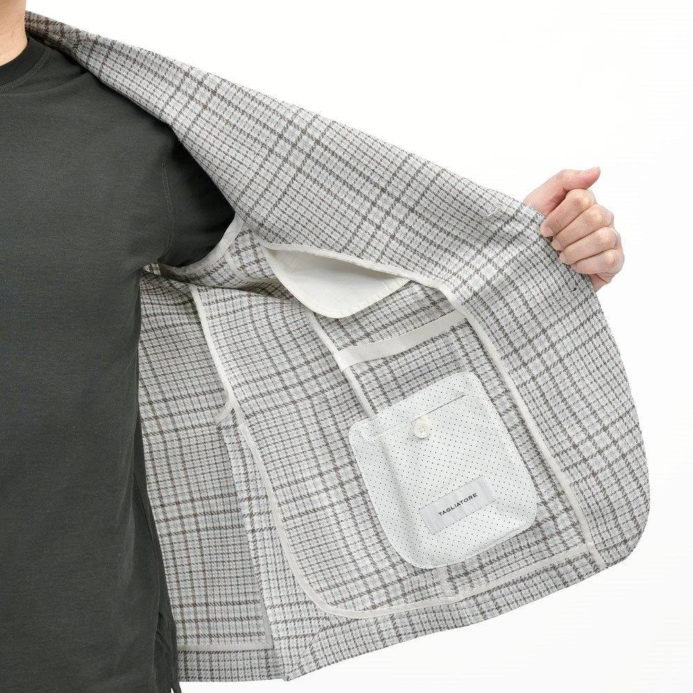 少し珍しいタイプの色合いですが、全体的には品よく纏まっているので着用してみると意外に馴染んでくれますね。チェック柄でありながらも重たさを感じさせず、春夏シーズンらしい軽快さもある一着なので、どう着用してもこなれた雰囲気になってくれるかと。 他のブランドには真似できないTAGLIATOREらしさがしっかりと感じられる存在です。 スタッフ 泉 |