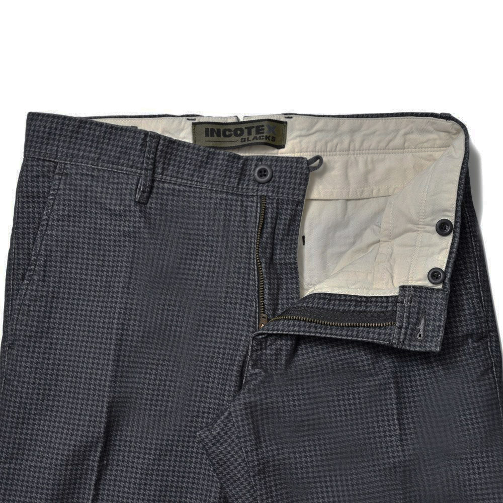 gujiの定番商品でもあるINCOTEX SLACKSの100番はお持ちの方も多いかと思います。こちらはあまり見ることのないストレッチネルファブリックのハウンドトゥース柄の一本で履き慣れたシルエットに少し変化を加えたい時にこちらの一本を取り入れられるのはいかがでしょうか。