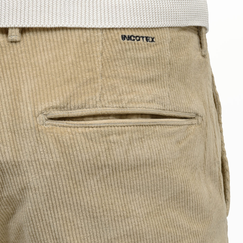 永遠の美脚パンツであるINCOTEX SLACKSの100番、洗練されたスリムフィットシルエットという事で、コーデュロイ素材でも非常に上品です。