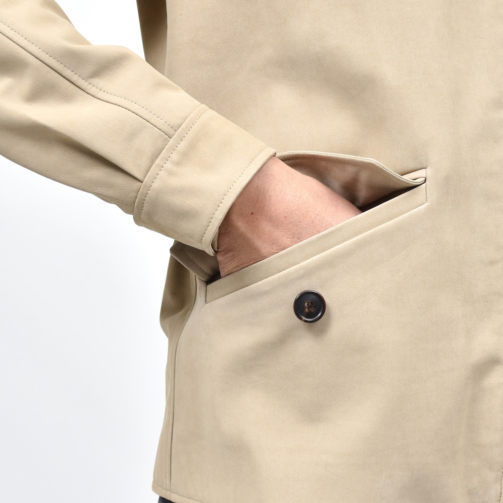 鞣しの段階で特別な溶剤を用い、ヌバックでありながらコーディング無しで水を弾きシミにならないというスペシャルな特性を持つオンリーワンレザーです。