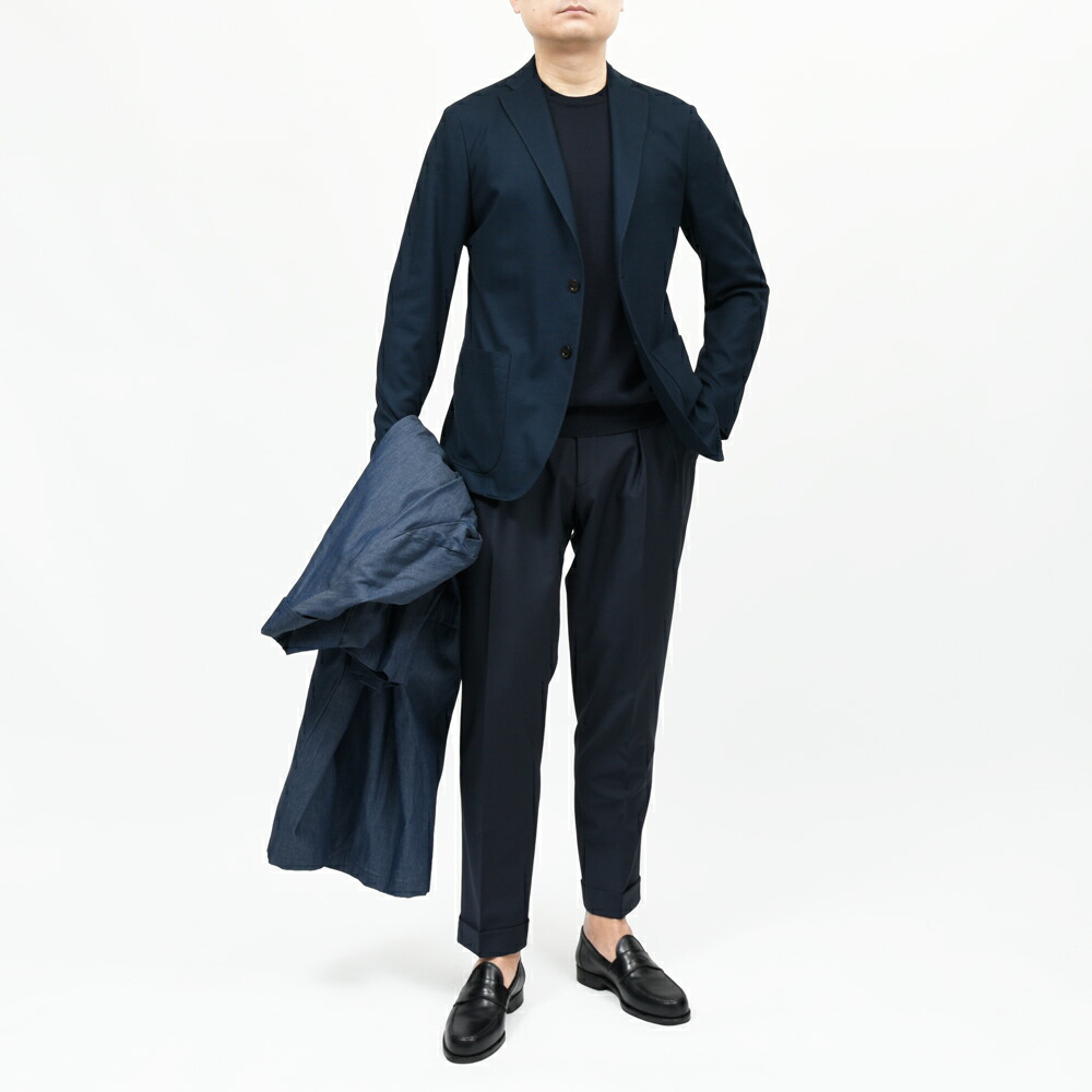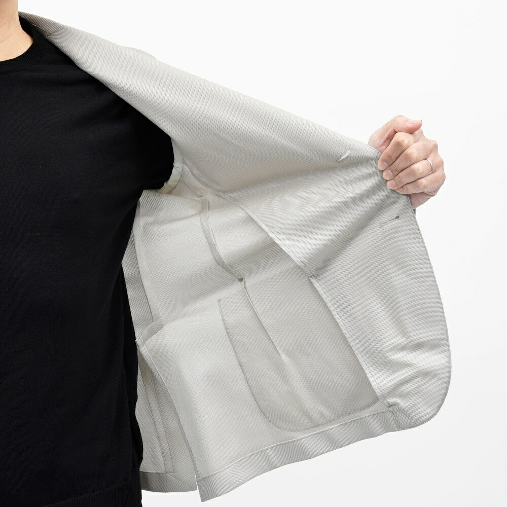DOVERをベースにしたシルエットであり、副資材を用いずに仕立てるアンコンストラクテッドモデル