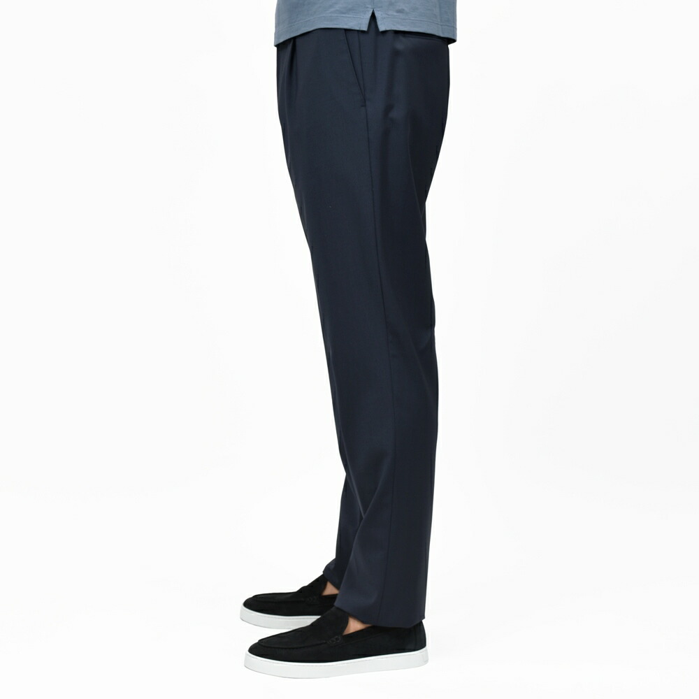 このパンツがあればオフィスはもちろんカジュアルまで幅広くカバーできるので、汎用性を備えたパンツをお探しでしたらとてもお勧めです。 クラシックなウールパンツとは違う、現代的なコンフォート性と美しさがあり、フットワークの軽さも印象付ける仕上がりですね。 よりキリッと見せたい時はINCOTEXなどのパンツが良いですが、日常的に気兼ねなく穿くならこの生地のクオリティやデザイン、シルエットがとても良いと思います。 スタッフ 西出 |